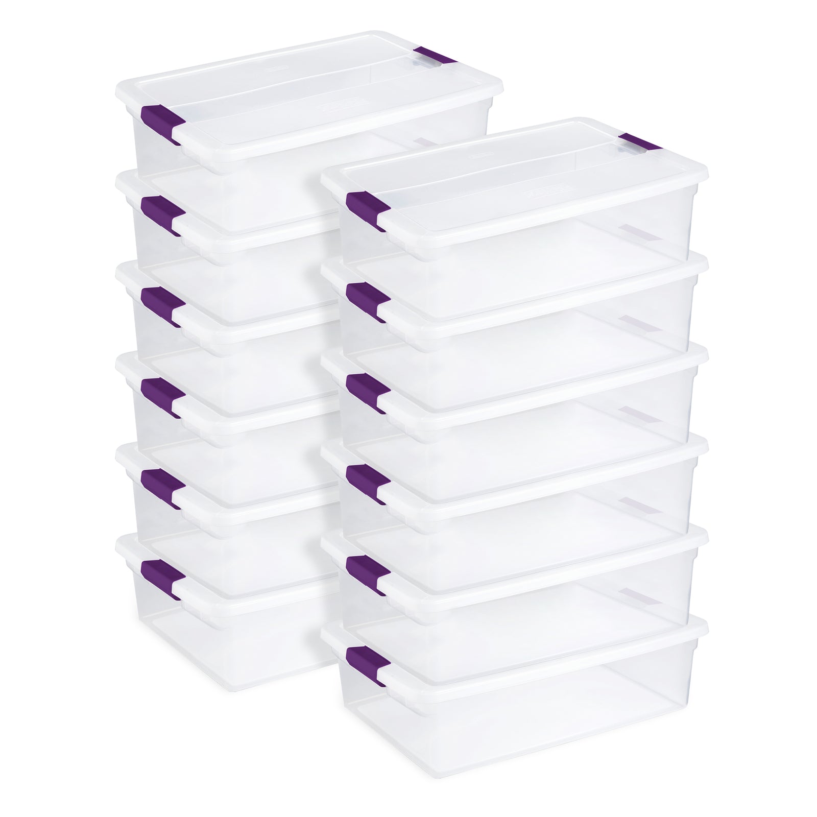 Sterilite 6 Qt. Plastic Stackable Storage Box with Latching Lid, Clear (12 Pack)