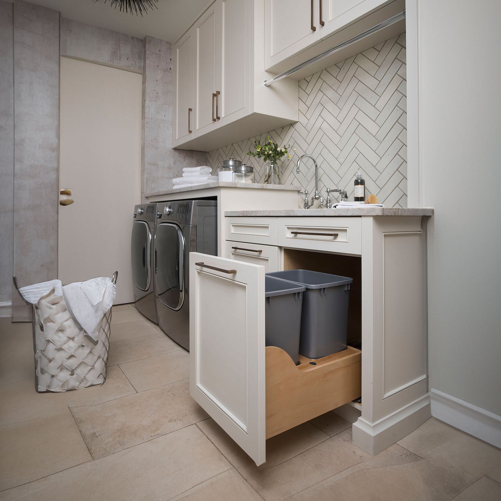 Rev-A-Shelf Double Pullout Trash Can 35 qt. for Kitchen, White, RV-18KD-11C S