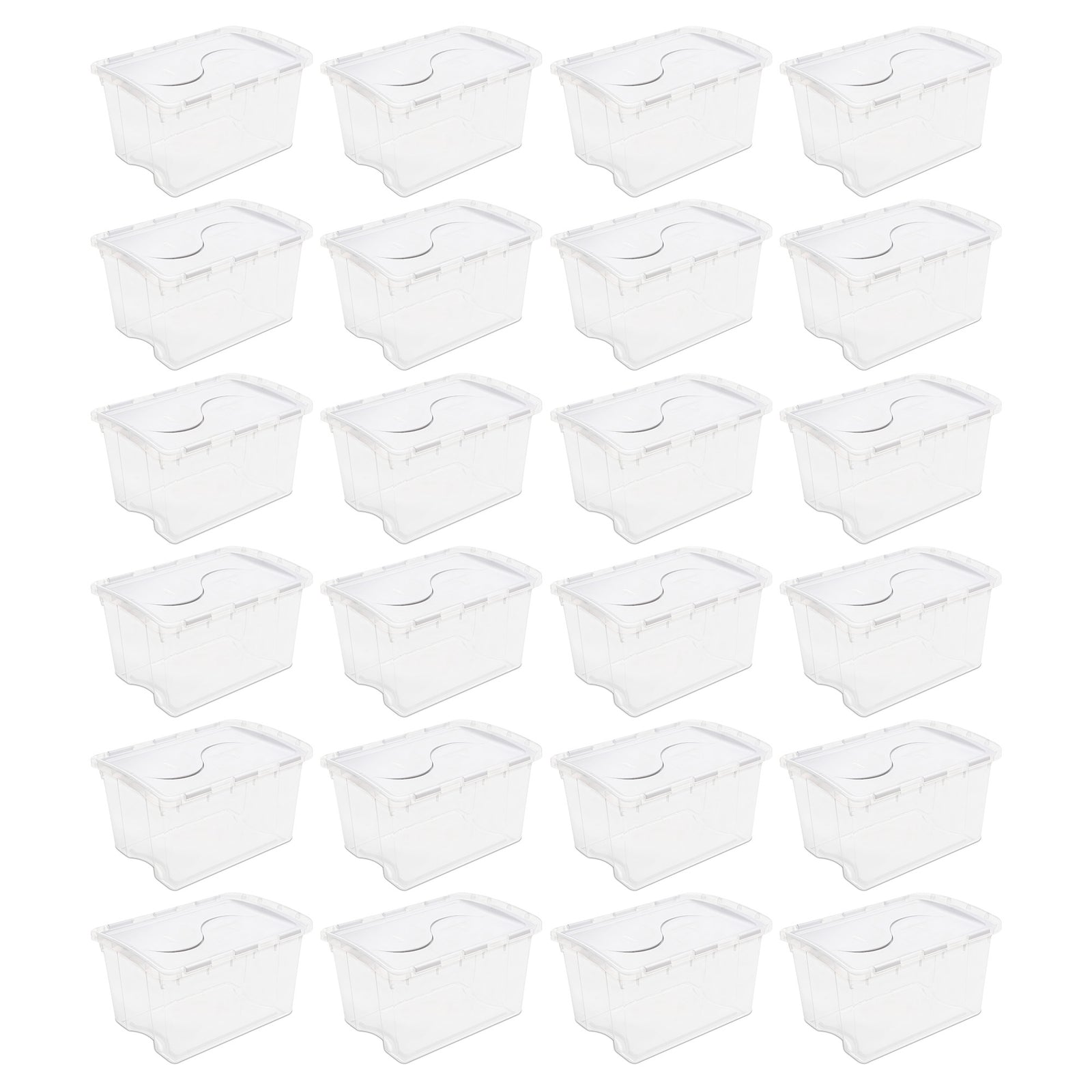 Sterilite 30 Qt Clear Plastic Stackable Storage Bin w/ White Latch Lid, 24 Pack