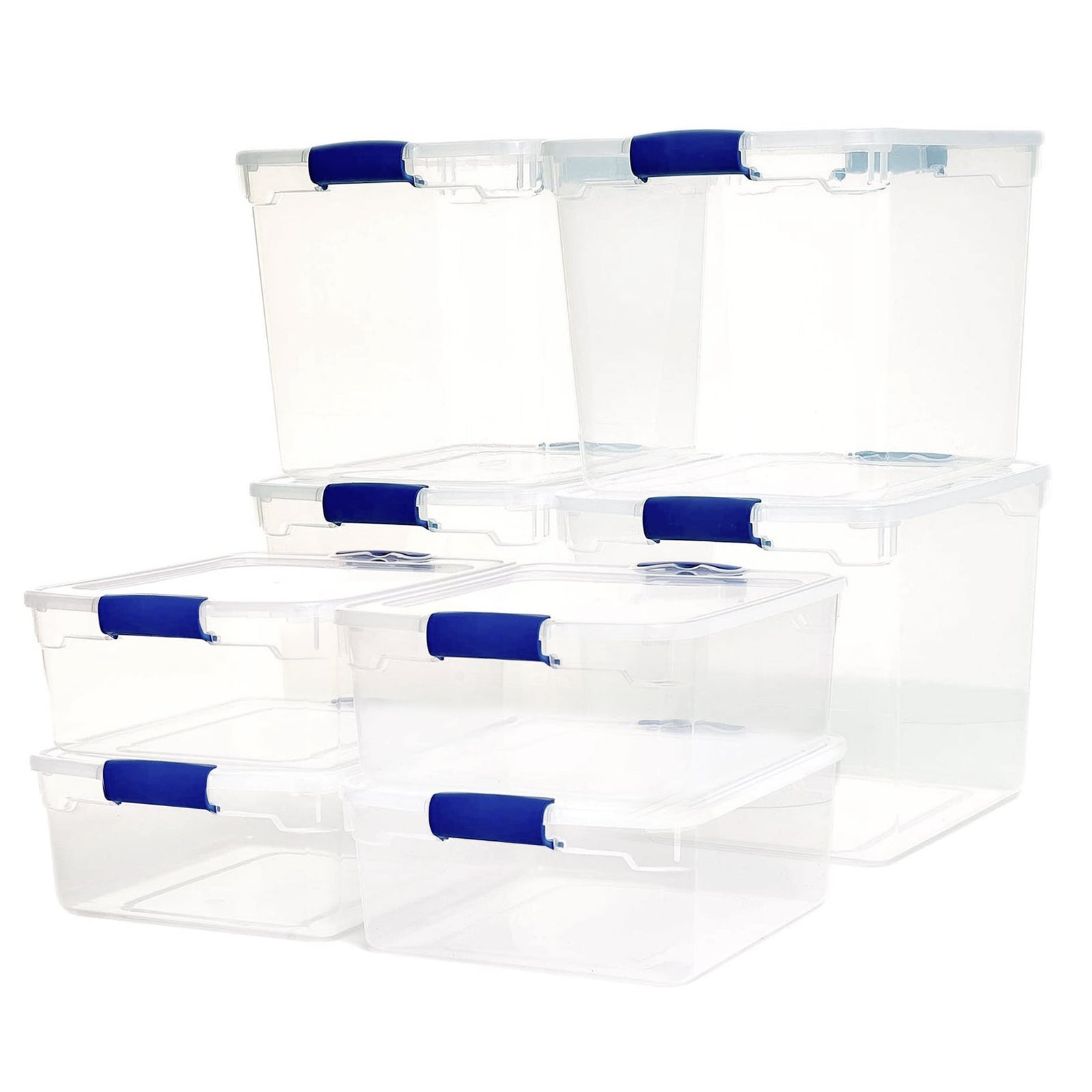 Homz 31qt Clear Plastic Stackable Storage Containers, 4 Pack & 15.5qt, 4 Pack