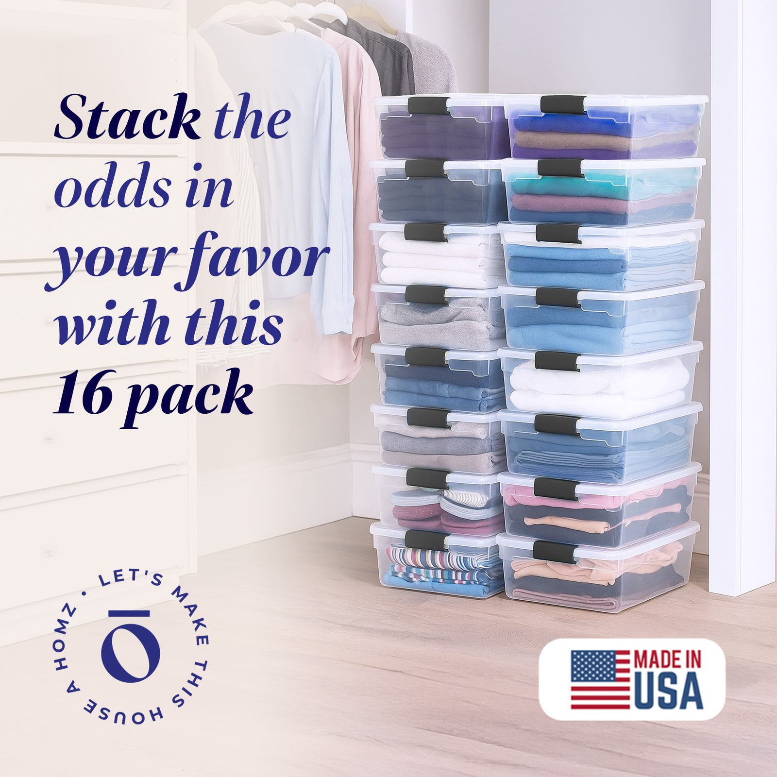 Homz 64 Qt Multipurpose Stackable Storage Bin with Latching Lids, Clear (6 Pack)