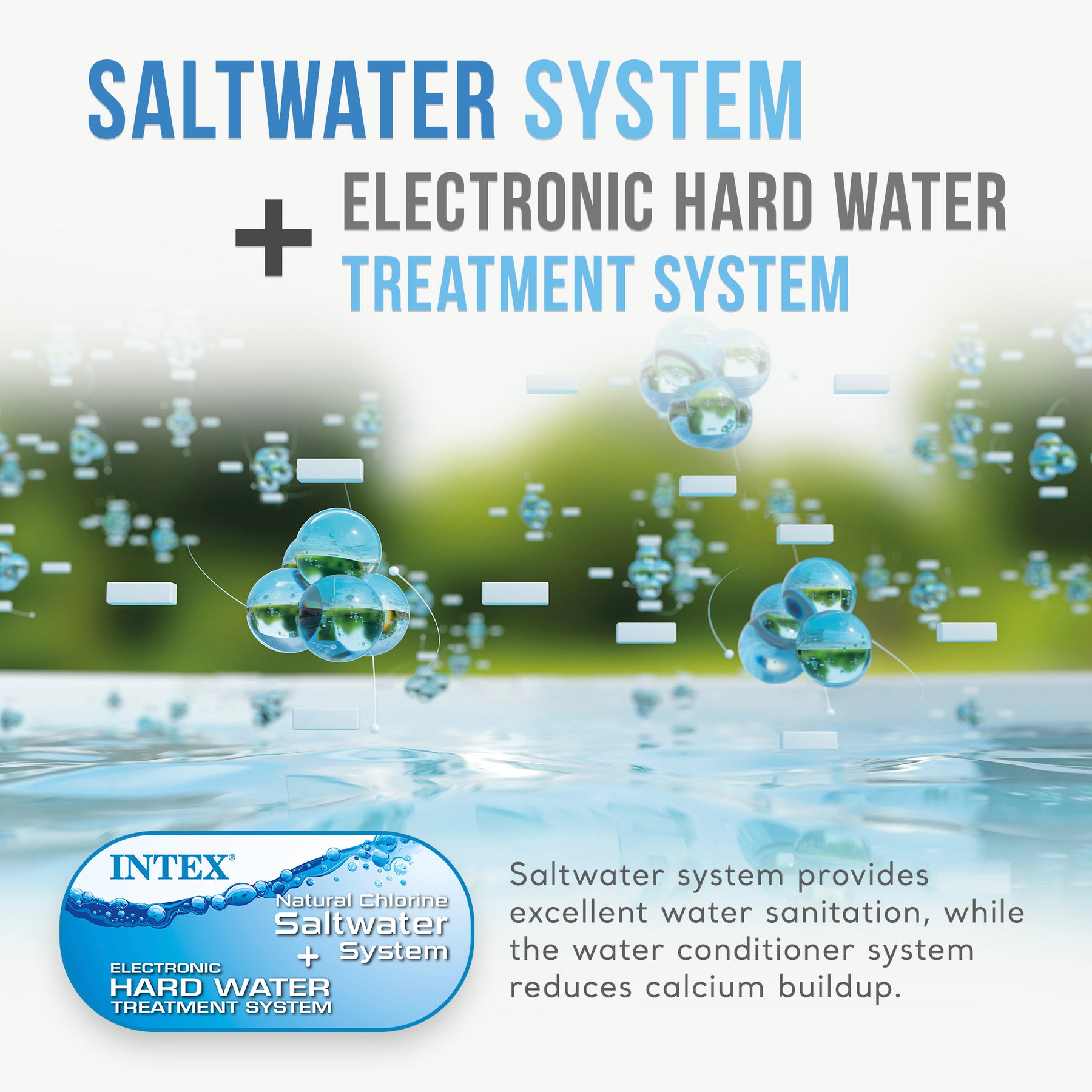 - Built-in hard water treatment and saltwater sanitation system makes water gentler on your skin, clothes, and the entire spa system