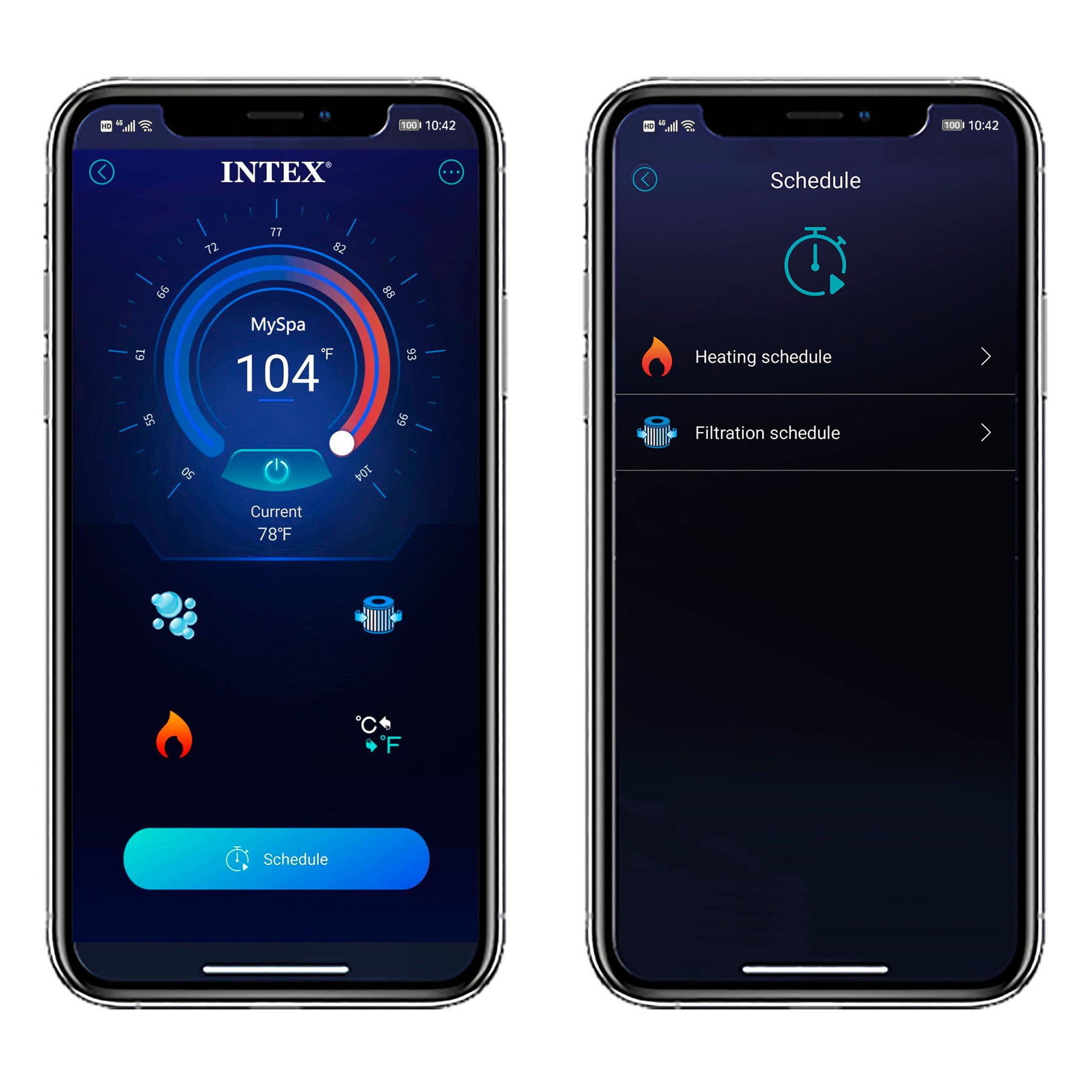 - Schedule when you want the spa to be heated and control the temperature with the Intex smartphone app