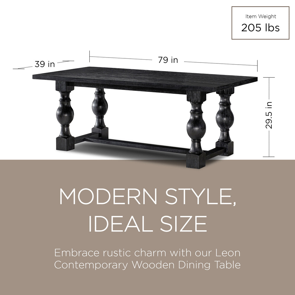 Maven Lane Leon Traditional Wooden Dining Table in Antiqued Black Finish