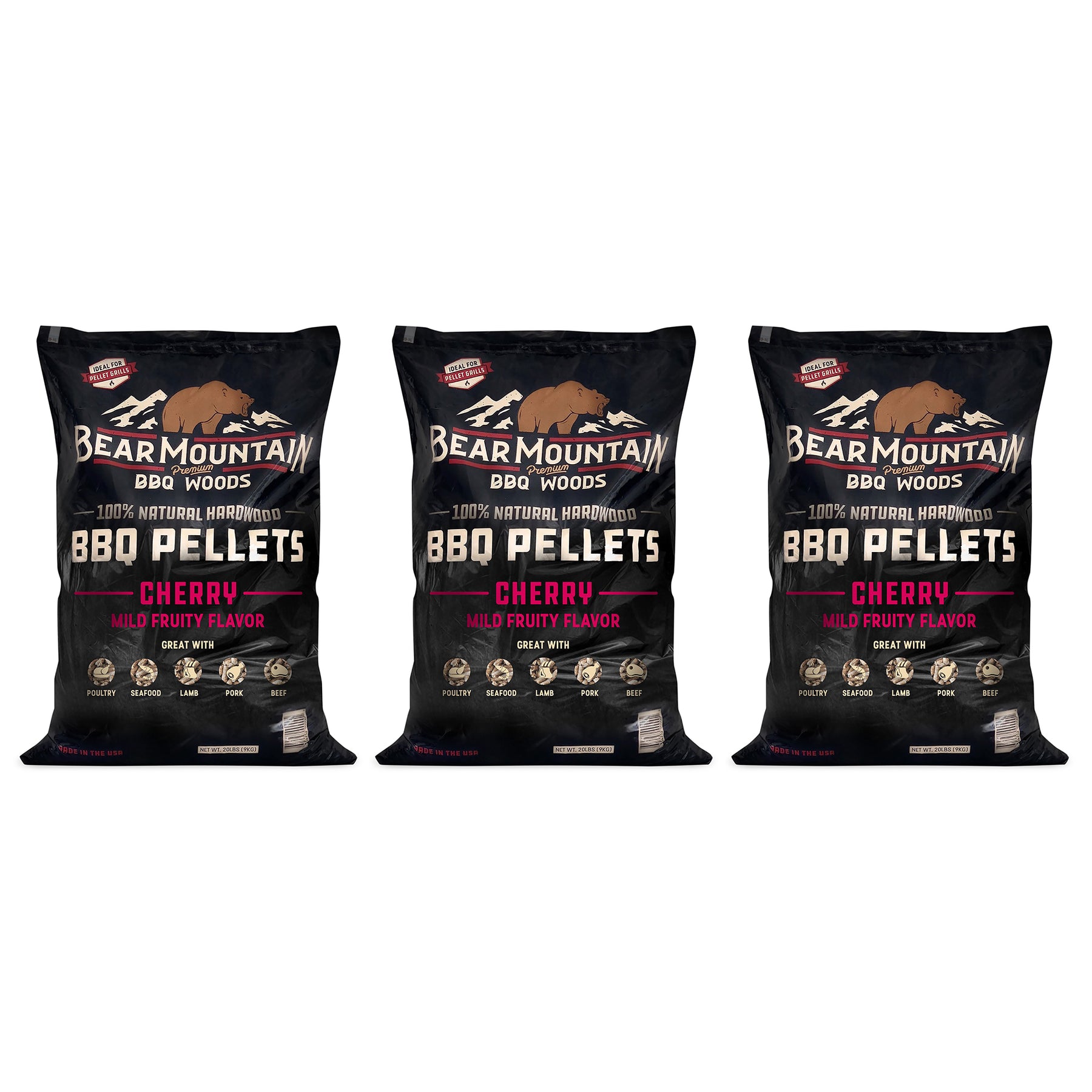 Bear Mountain BBQ All Natural Hardwood Cherry Smoker Pellets, 20 lbs (3 Pack)