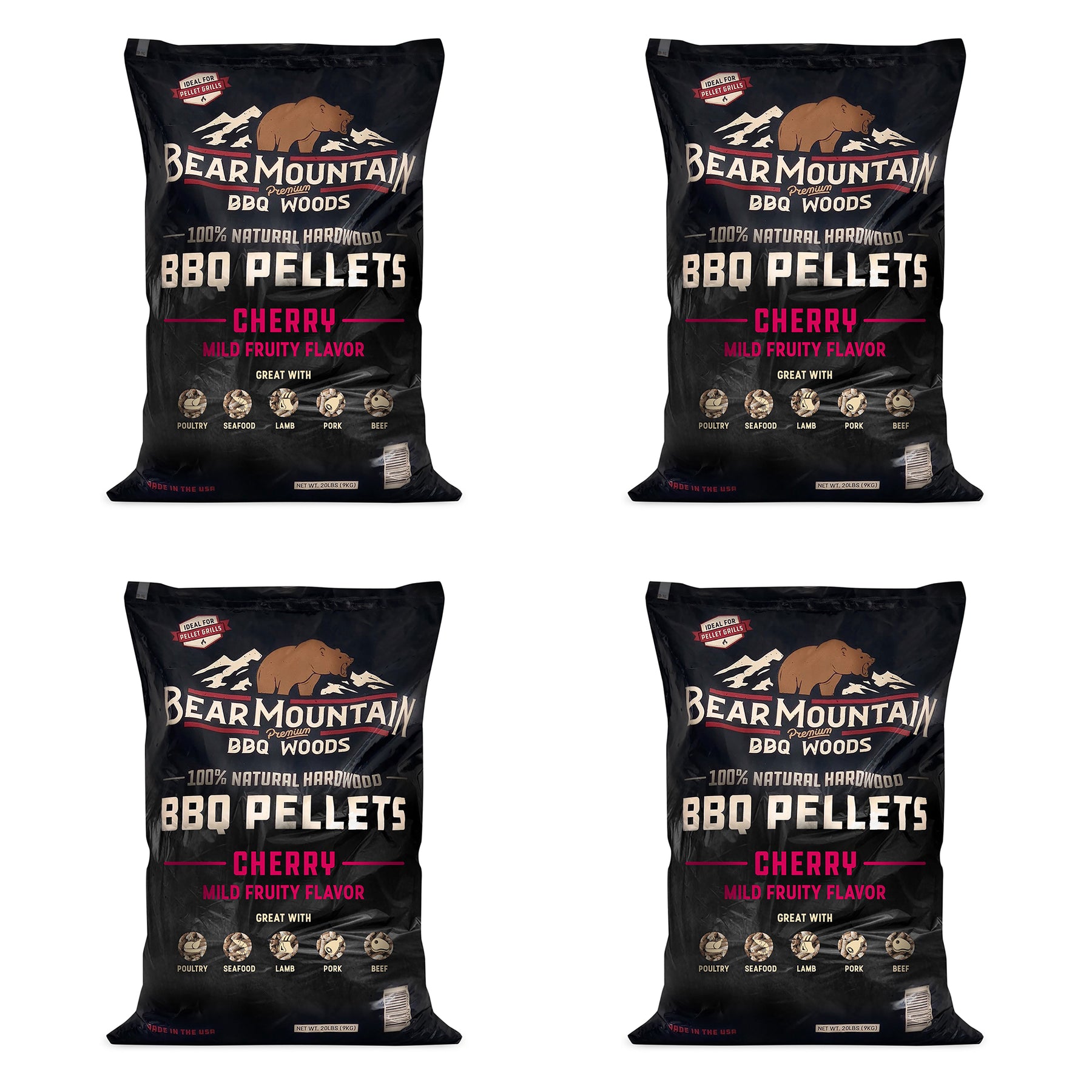 Bear Mountain BBQ All Natural Hardwood Cherry Smoker Pellets, 20 lbs (4 Pack)