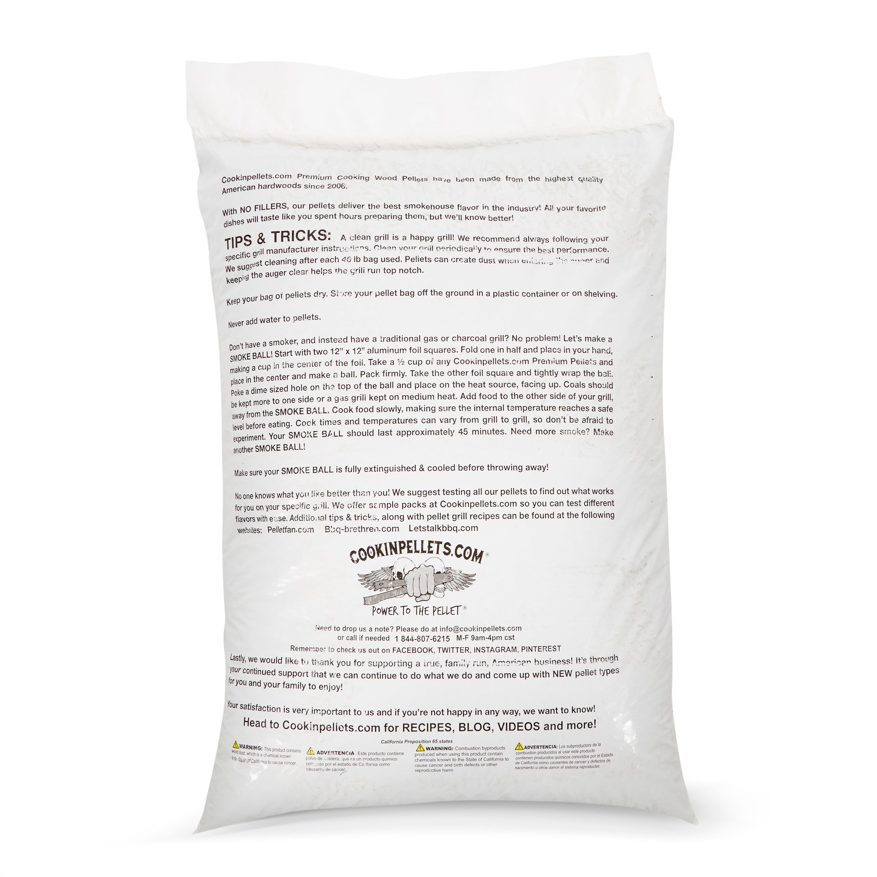 You'll get a 40-pound bag of mixed wood pellets, which is plenty for several cookouts. This bag of wood pellets contains a mix of the best hardwoods: hickory, cherry, hard maple, and apple. This mix gives you a smooth smoke flavor on long smokes. The other bag has all Apple Mash wood pellets. These high-quality wood pellets condense these hardwoods and jam-pack the smokey flavor within. These hardwood pellets contains no bark or filler woods. Just genuine, 100-percent hardwood.