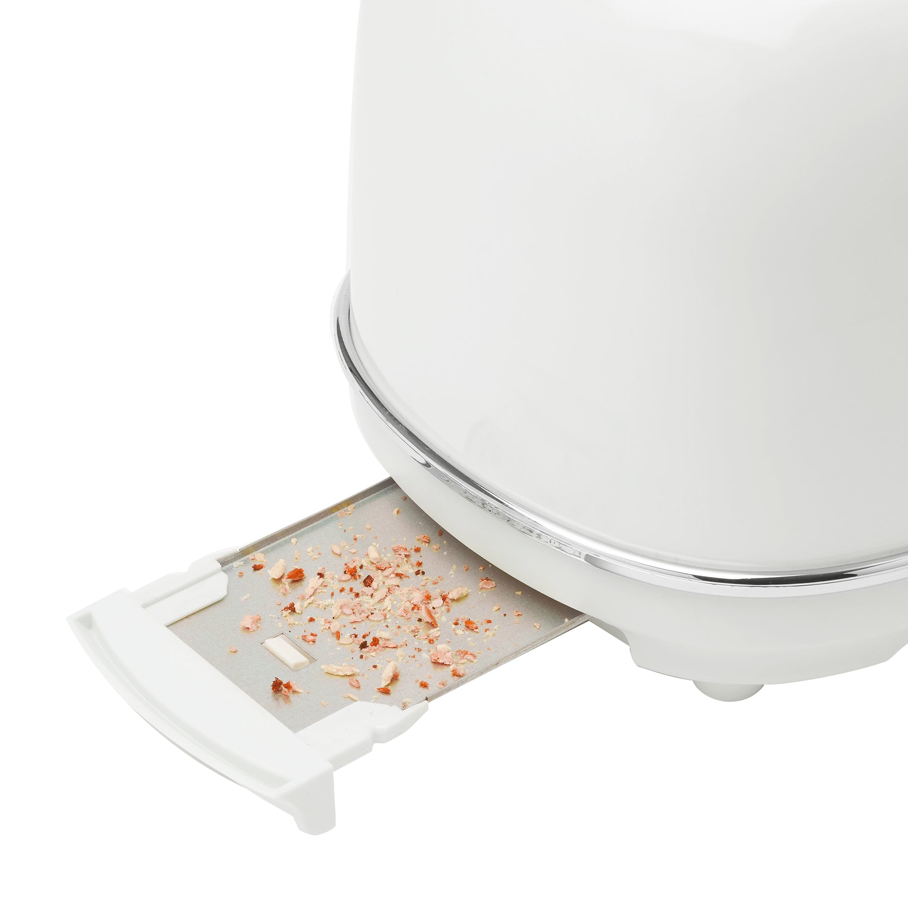 The beautiful toaster features convenient cancel/defrost/reheat settings, self-centering function, and a removable crumb tray for easy cleaning. The variable browning knob gives you control over the toastiness of your bread, letting you choose from light browning, dark browning, or the golden browns in between. Built with extra-wide slots, this toaster does more than make crunchy toast. Cook thick slices of bread or your favorite bagel exactly how you like it by adjusting the variable browning control knob on this cutting-edge machine.