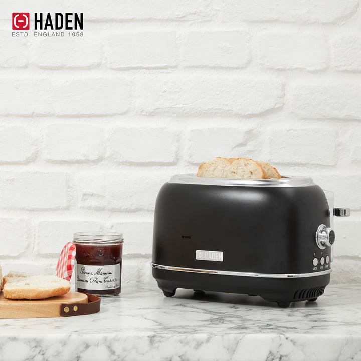 Haden Heritage 2 Slice Wide Slot Toaster & Electric Water Kettle, Black & Chrome