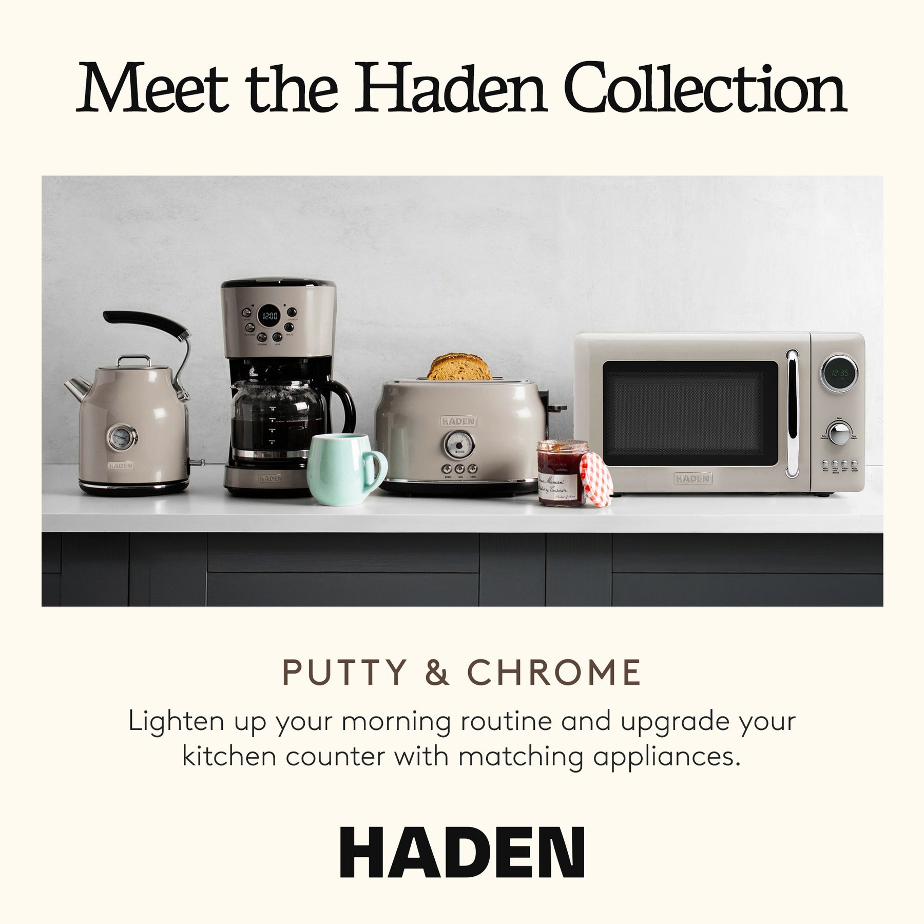 Create a classic and sophisticated look in your kitchen with the Haden Microwave Oven. With a sleek, sophisticated design, this microwave complements any countertop, adding a touch of elegance to your kitchen. Boasting a 0.7-cubic-foot capacity and 700-watt power, it efficiently handles your cooking needs. The digital controls offer easy operation, while the defrost and Instant Start functions simplify meal prep.