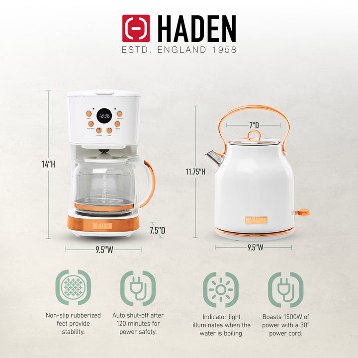 Haden 12 Cup Coffee Maker & Heritage 1.7 Liter Electric Kettle, Ivory & Copper