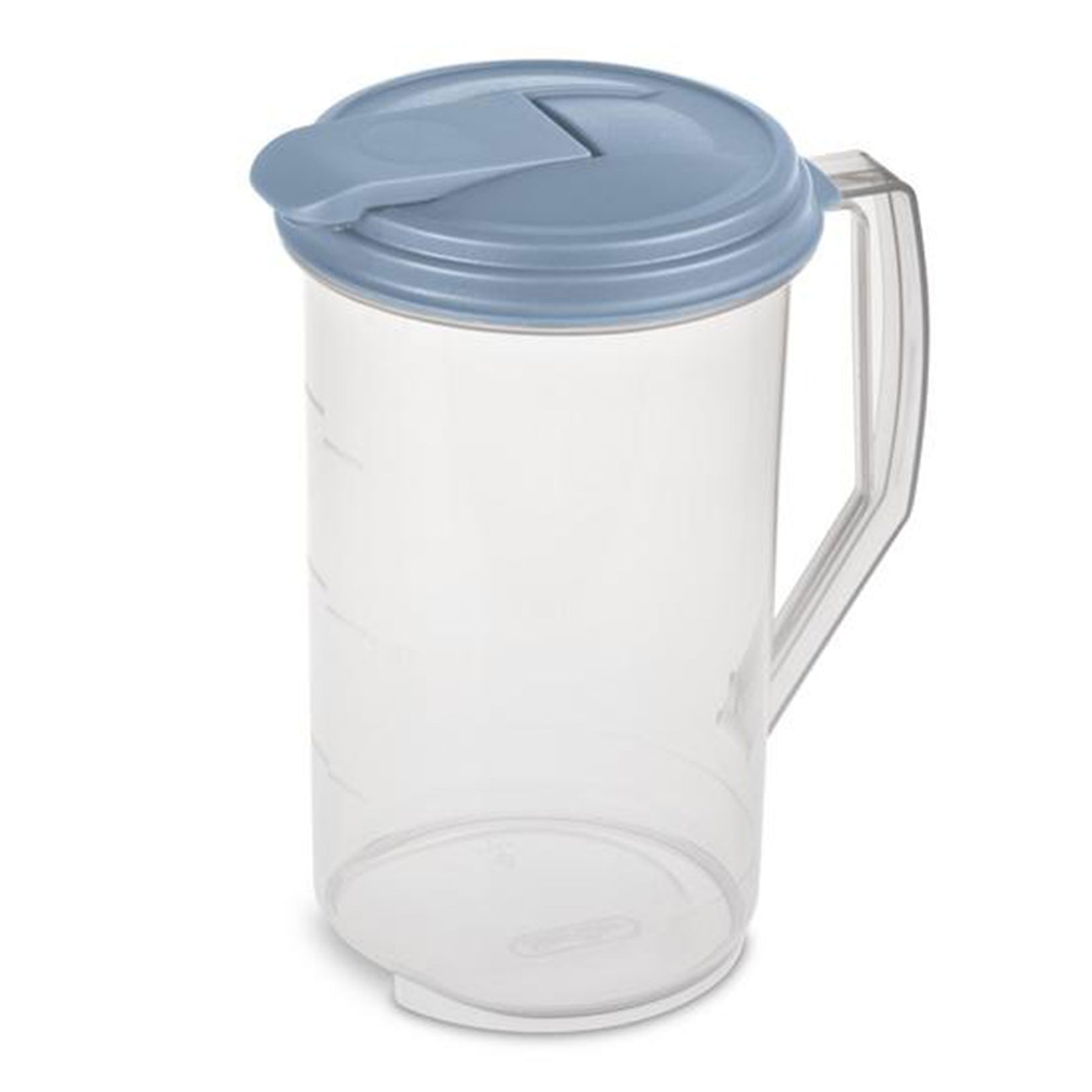 Always have your favorite drink ready to go and chilled in the fridge with the Sterilite 2-Quart Round Plastic Hinged Pitchers.