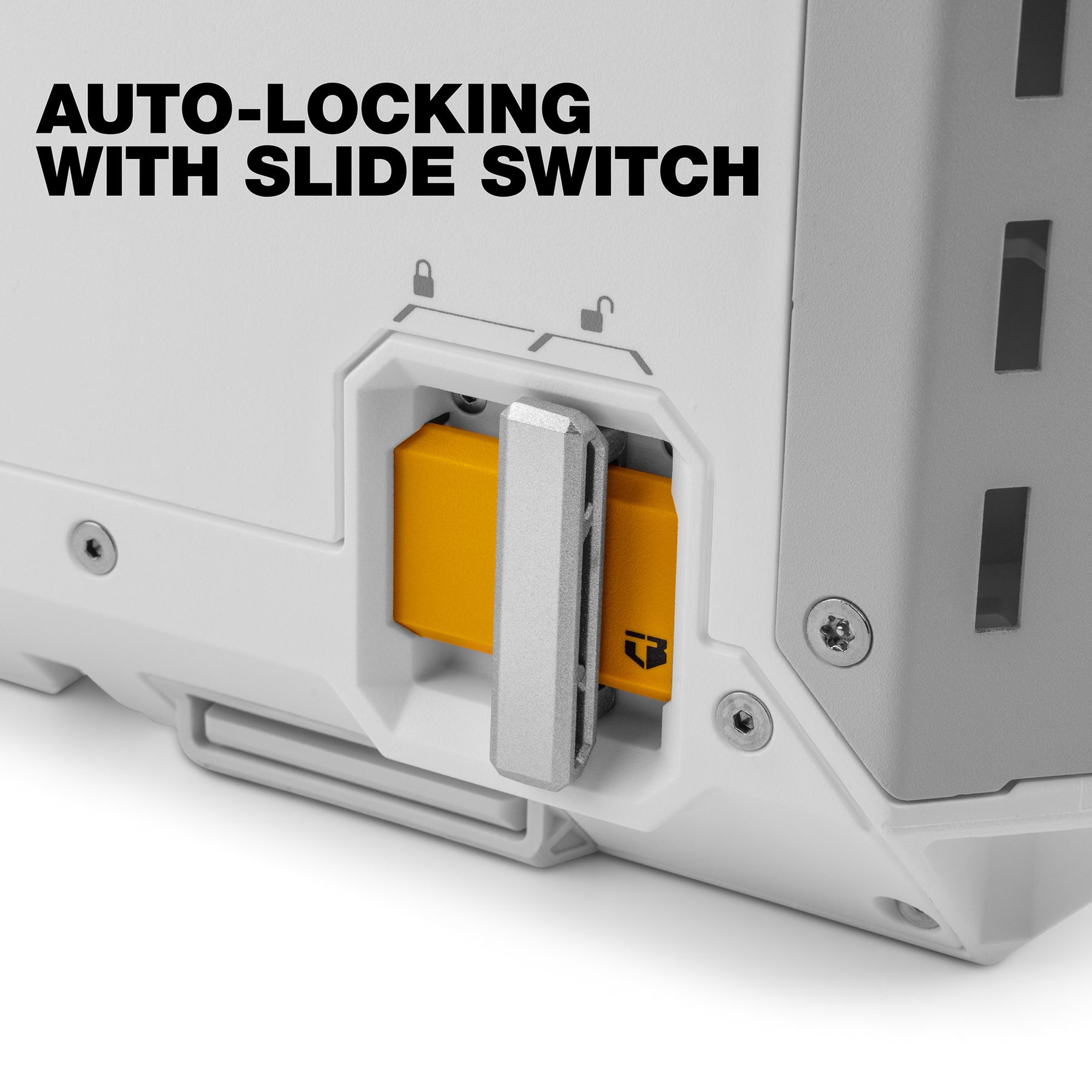 - Slide switch unlocks the stack and clearly indicates when it is locked and ready for transport