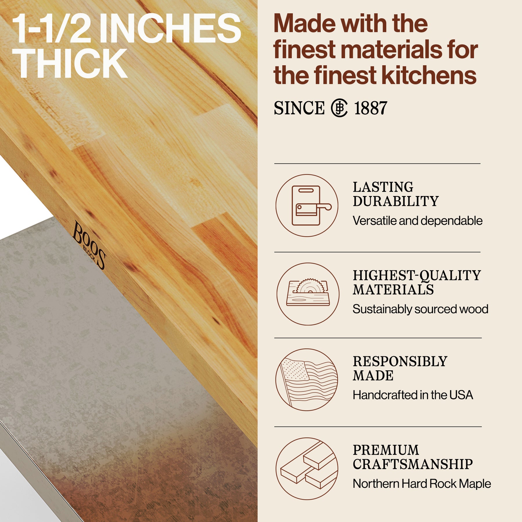 - Features beautiful edge grain construction with John Boos penetrating oil finish