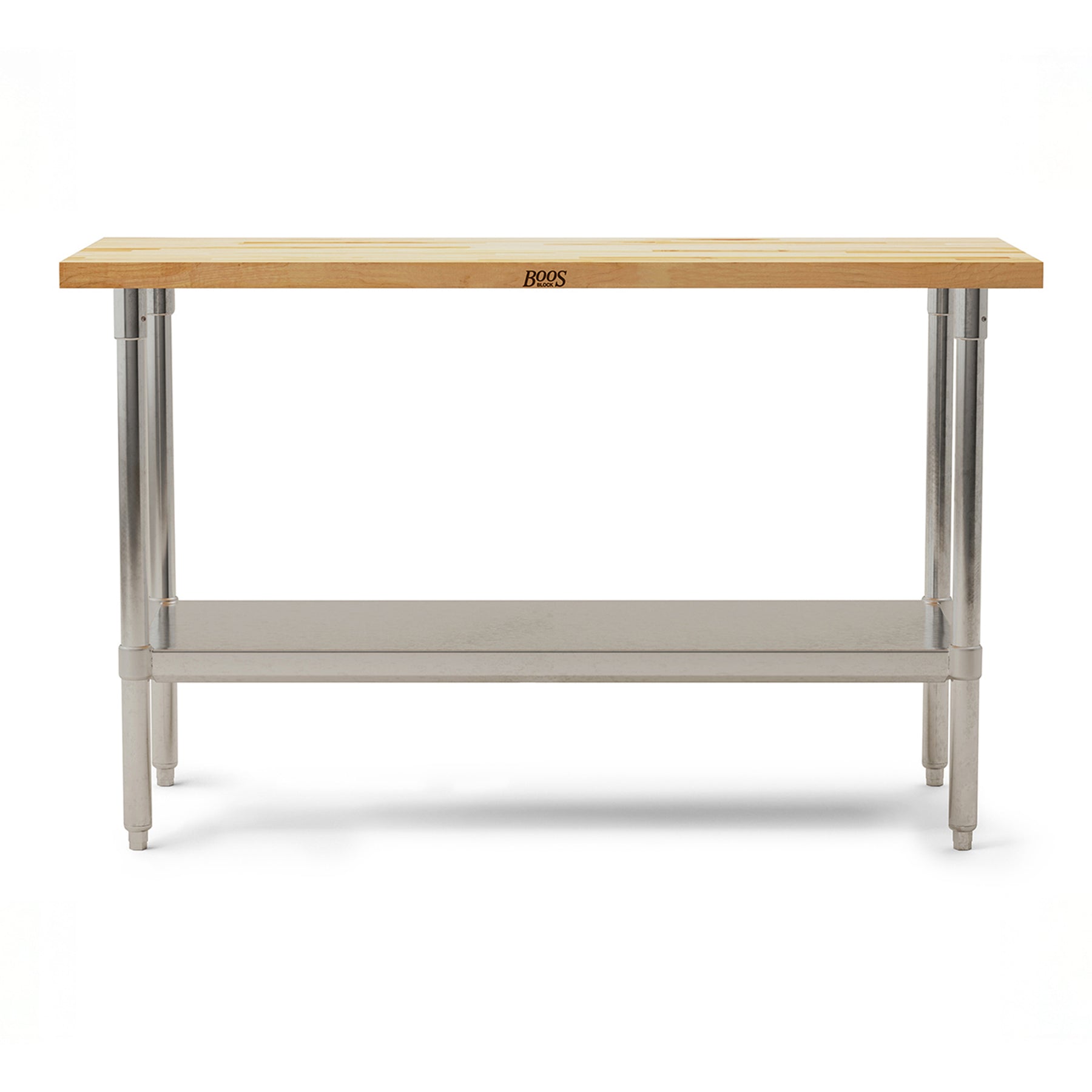 You can never have too much room to work. Expand your space with John Boos Maple Wood Top Work Table with an Adjustable Lower Shelf. The edge grain blended maple table features a smooth surface top with a food-safe oil finish to resist spills and stains.