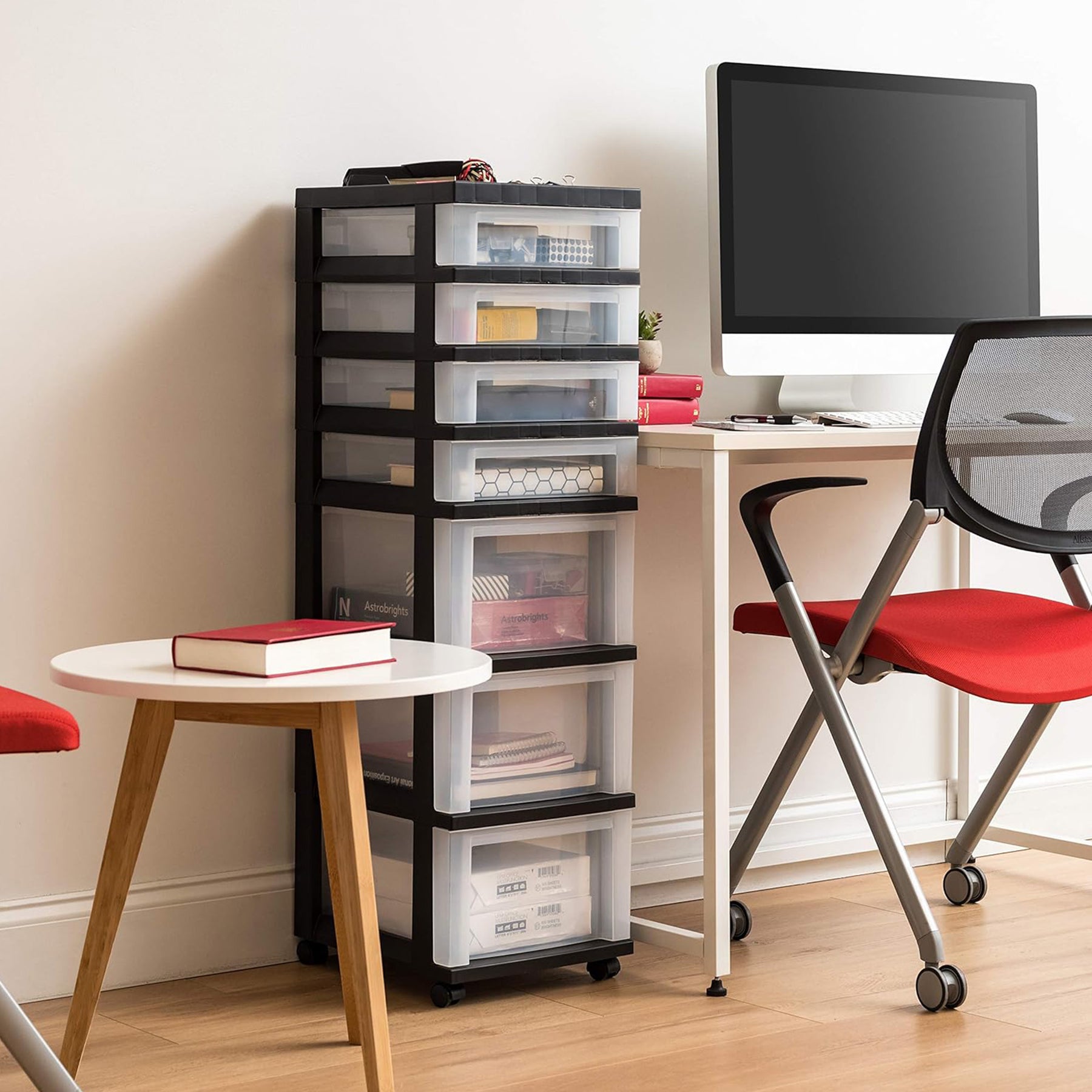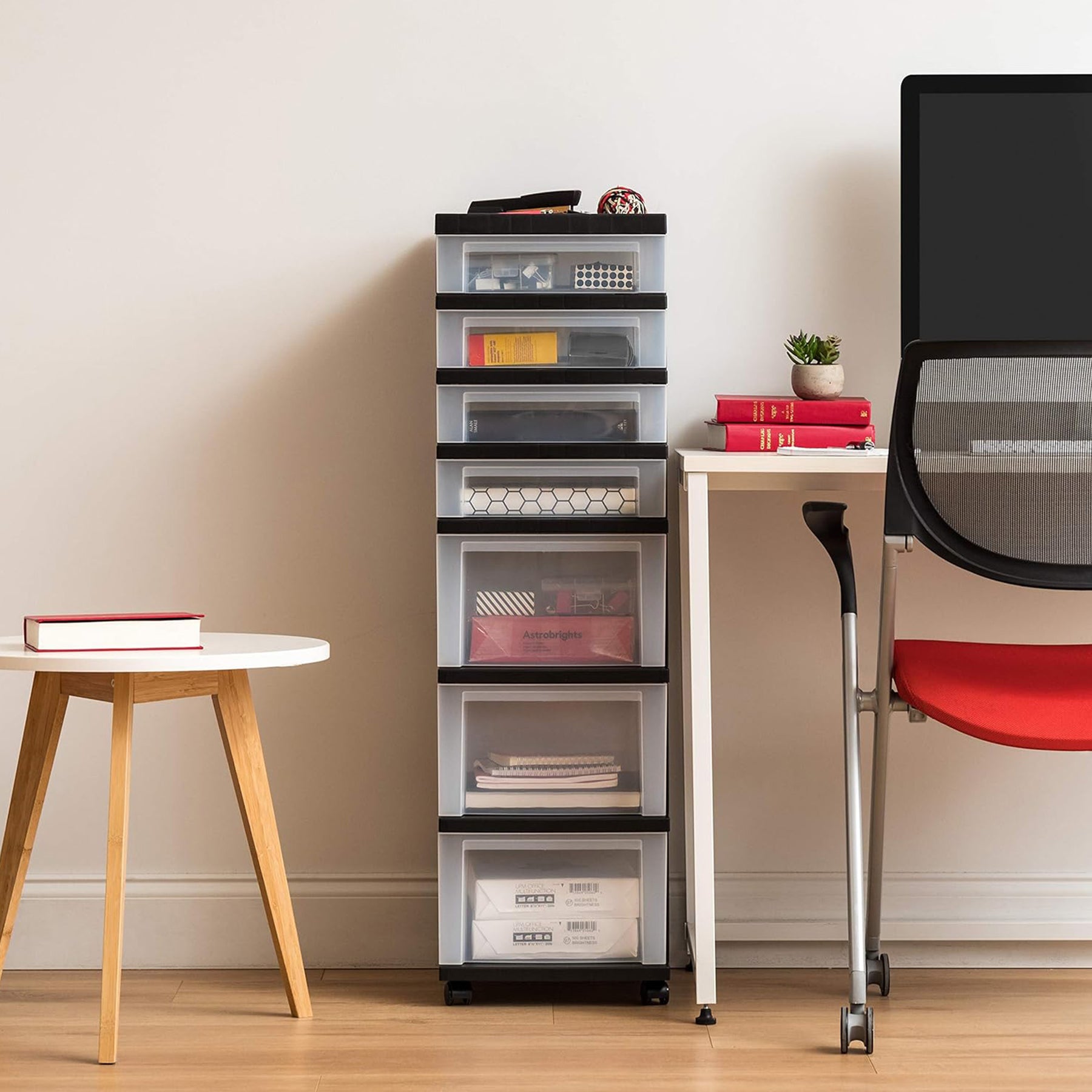 - Store a variety of household items that are frequently used in the office, closet, under-desk, craft room, or dorm