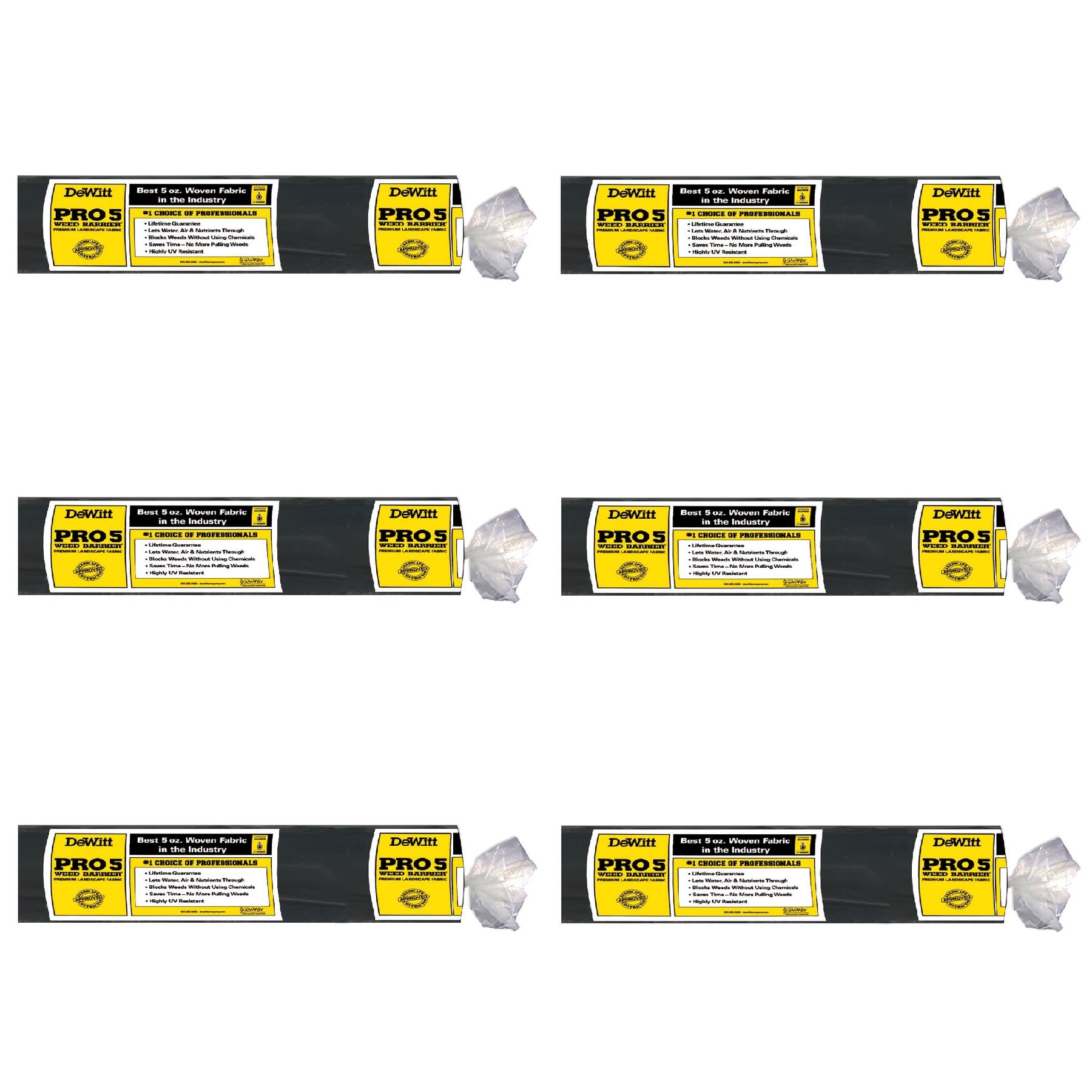 (6 Pack) of DeWitt 4 x 250-Foot 5-Ounce Pro 5 Weed Barrier Fabric. Springtime brings a lot of things. Warm weather, fresh smells, and a good mood feeling. Unfortunately, it also brings unwanted things like out of control weeds. Instead of battling weeds once they arrive, you can get out in front of your potential weed problem.