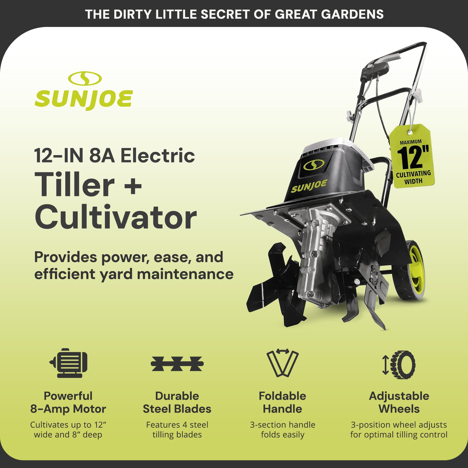 Sun Joe Electric Garden Tiller/Cultivator, 3 Position Height Adjustment, TJ602E