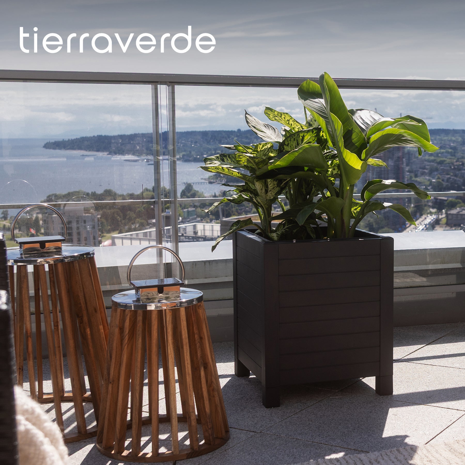 Tierra Verde 17-Inch x 17-Inch Flora Cube Planter Box for Patios or Decks, Black
