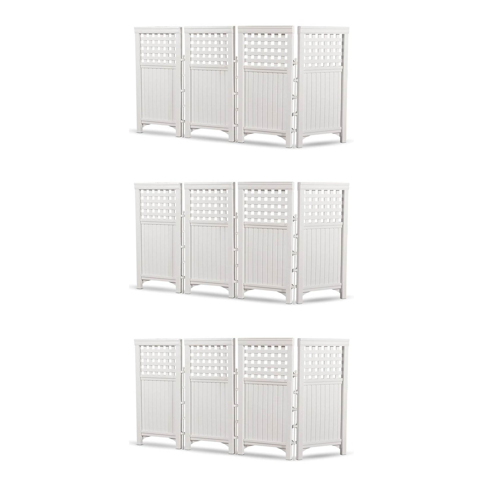Suncast 4 Panel Screen Enclosure Freestanding Steel Resin Reversible Panel Outdoor Screen TRE, White