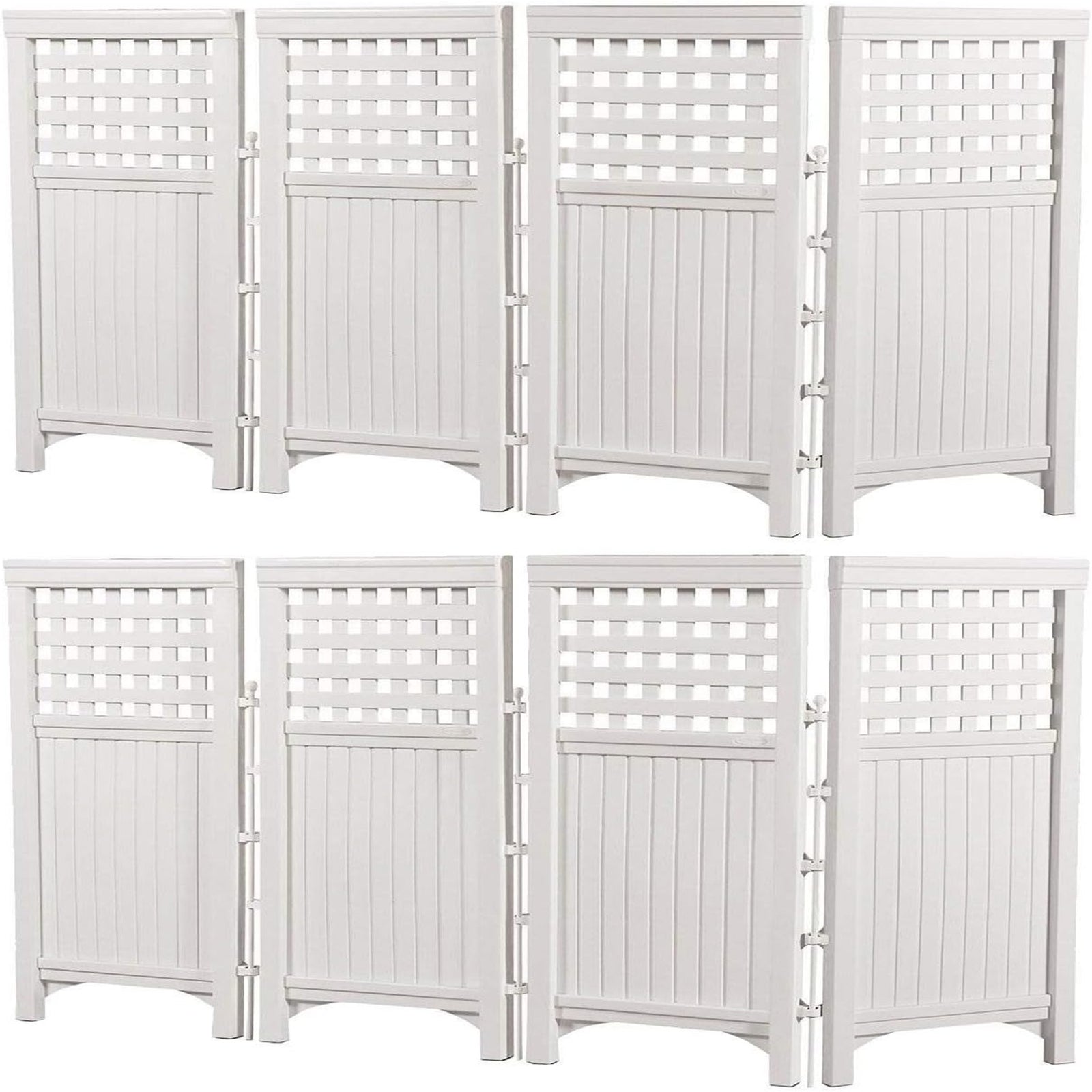 Suncast Outdoor Patio Garden 8 Panel Yard Screen Enclosure Gated Fence, White