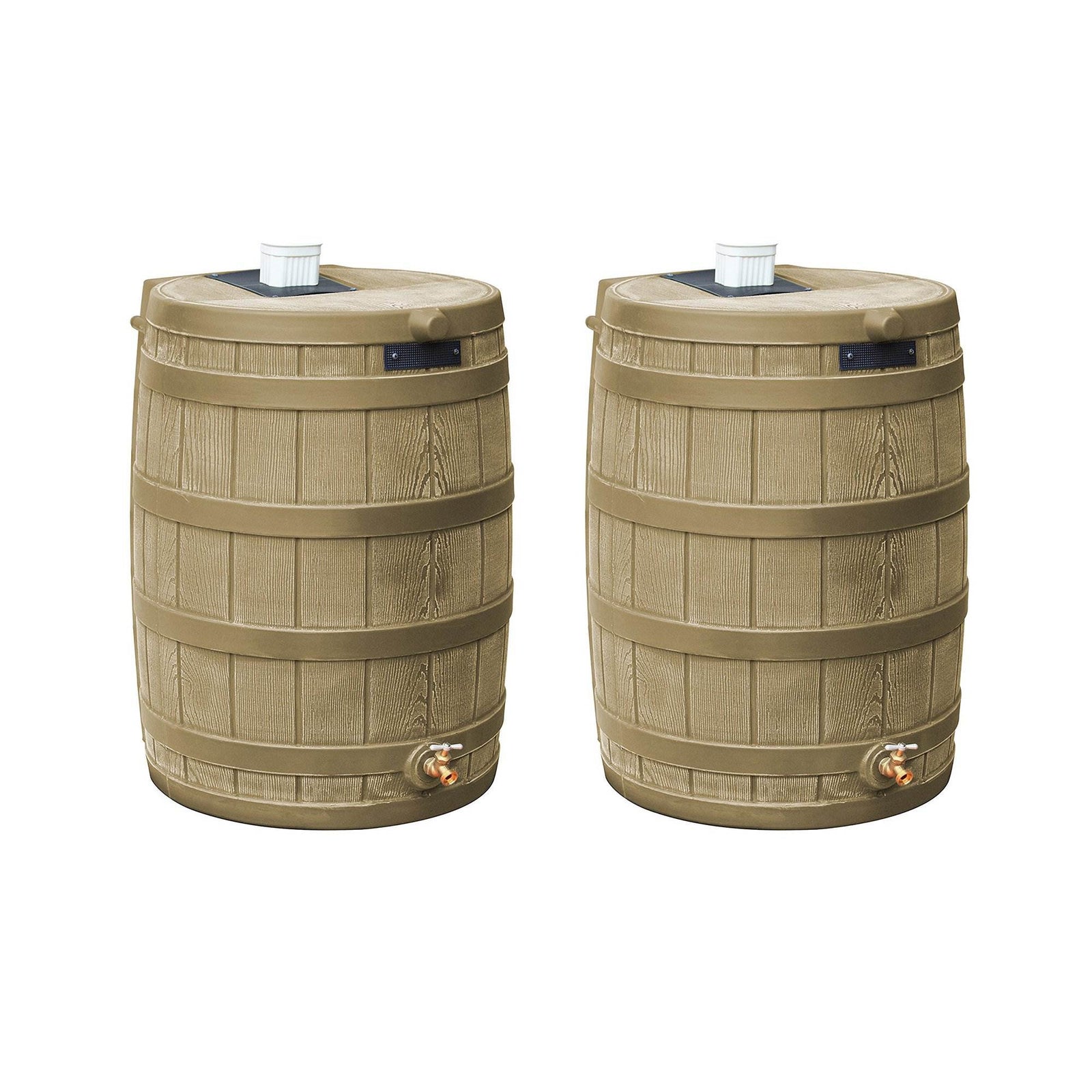 Good Ideas Rain Wizard 50 Gallon Rain Barrel Water Collector, Khaki (2 Pack)