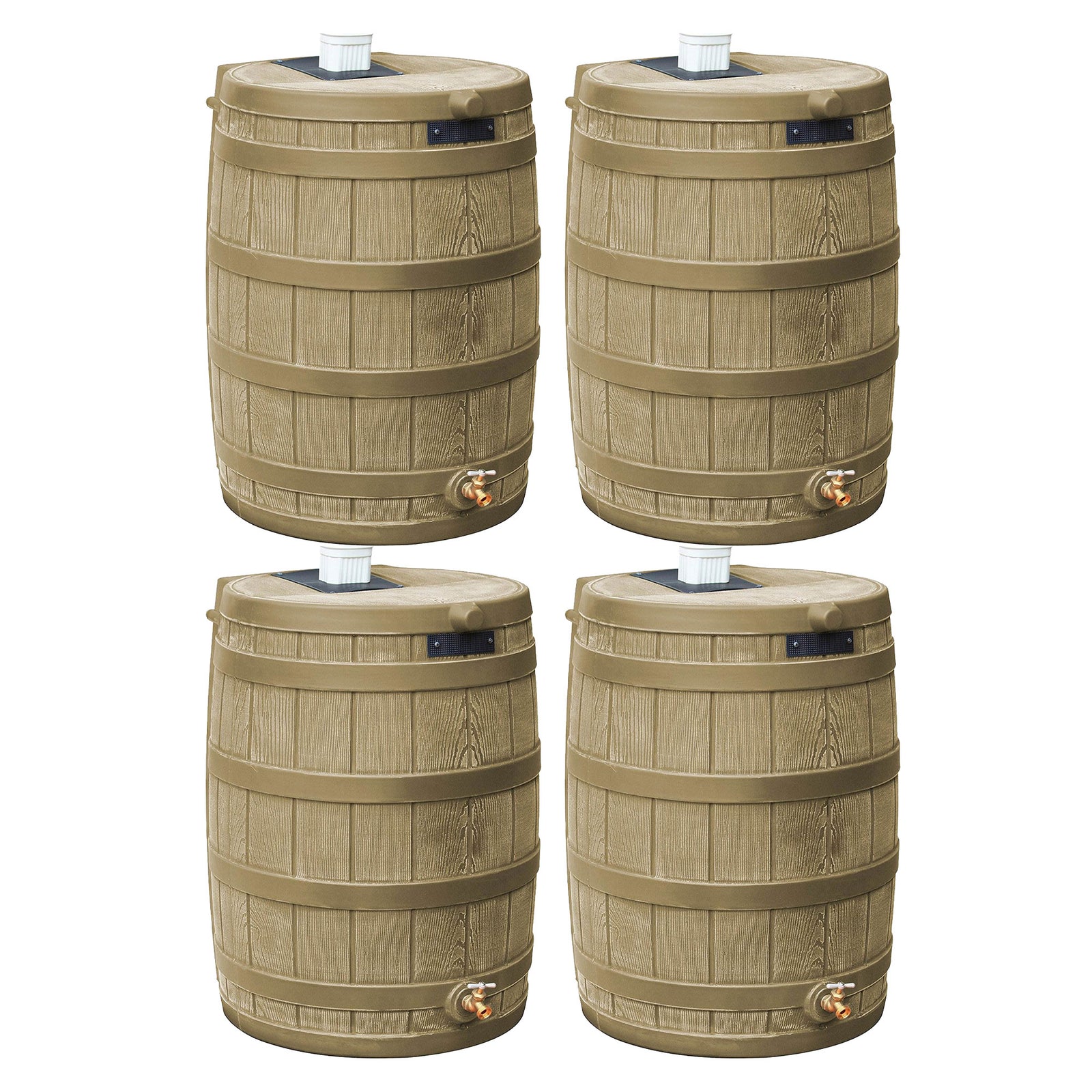 Good Ideas Rain Wizard 50 Gallon Plastic Barrel Water Collector, Khaki (4 Pack)