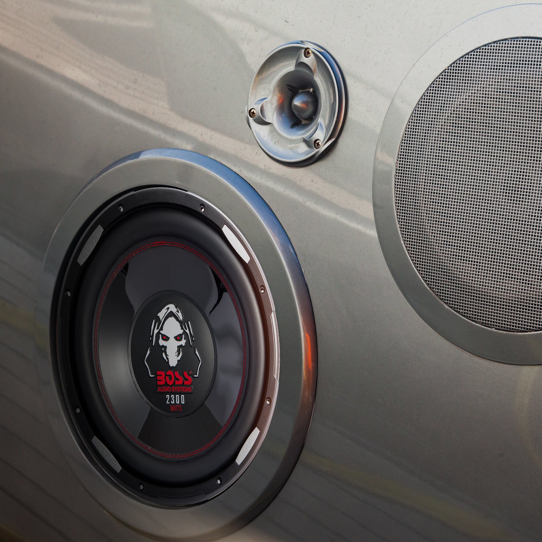 Get more out of your car audio with a subwoofer that takes your car audio to the next level from a name you can trust the Boss 12 Inch 2300 Watt Car Audio Subwoofer. This powerful subwoofer boasts up to 2300 watts of max power, and 1150 watts RMS power with dual 4 ohm voice coils and a poly injection cone, producing mind-blowing bass that will transform your car audio experience.