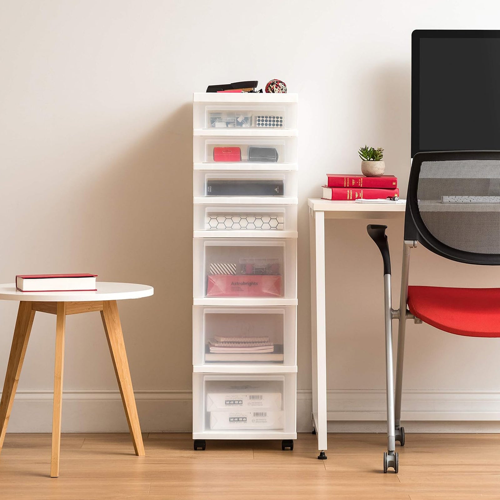IRIS USA 7-Drawer Plastic Storage Cart with Wheels for Craft and Office, White