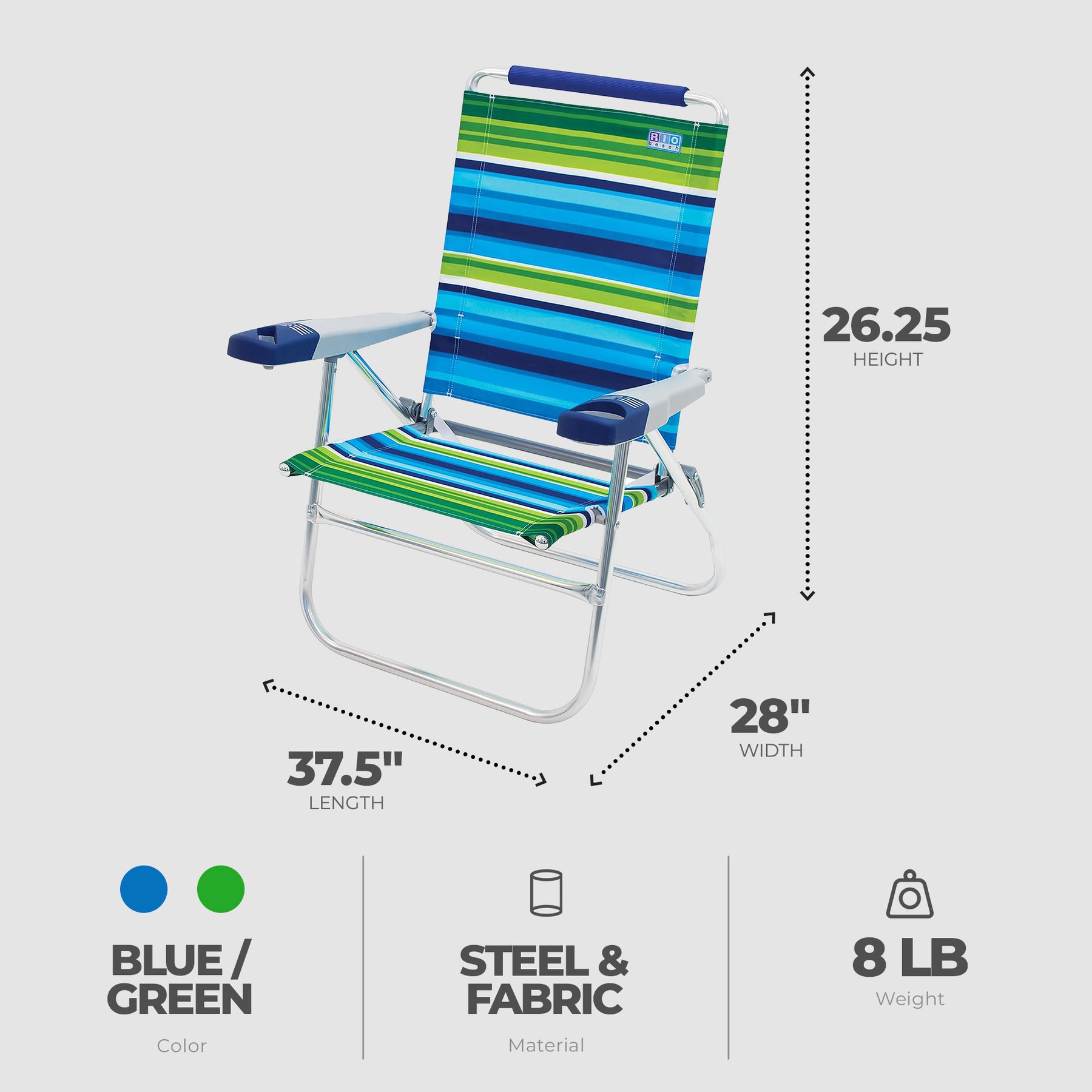 RIO Brands 15 Inch Cushioned Beach Chair w/Aluminum Frame, Blue/Green (4 Pack)