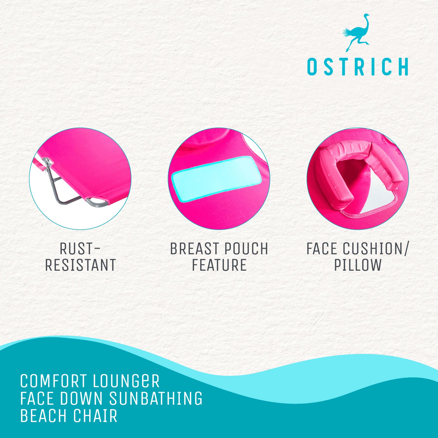 Ostrich Ladies Comfort Lounger, Portable Beach Camping Pool Tanning Chair, Pink