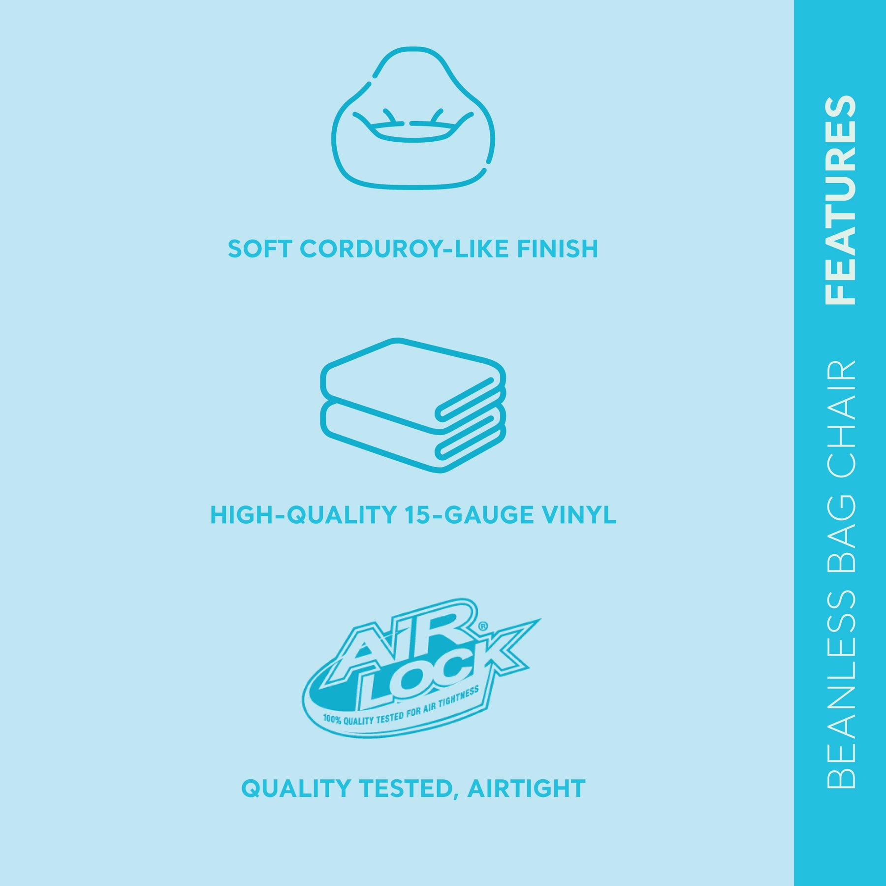 Chill out and relax on this good ole' 4 pack of Intex Inflatable Beanless Bag Chair. You are never too old for a classic, beanless bag chair. It inflates quickly and can be deflated easily when more space is needed. The beanless chair looks cool and is the most comfortable chair wherever you plop it down. It has a waterproof flocked top surface, a contoured seat for extra comfort, and a corduroy texture with a grey color that is complementary to your dorm room, bedroom, basement, or any room. Watch a movie, take a mid afternoon snooze in between classes, and have a handy extra seat for your friends Cozy and comfortable, we have a feeling you and this Intex Inflatable Beanless Bag Chair are going to get along just fine.(4 Pack)