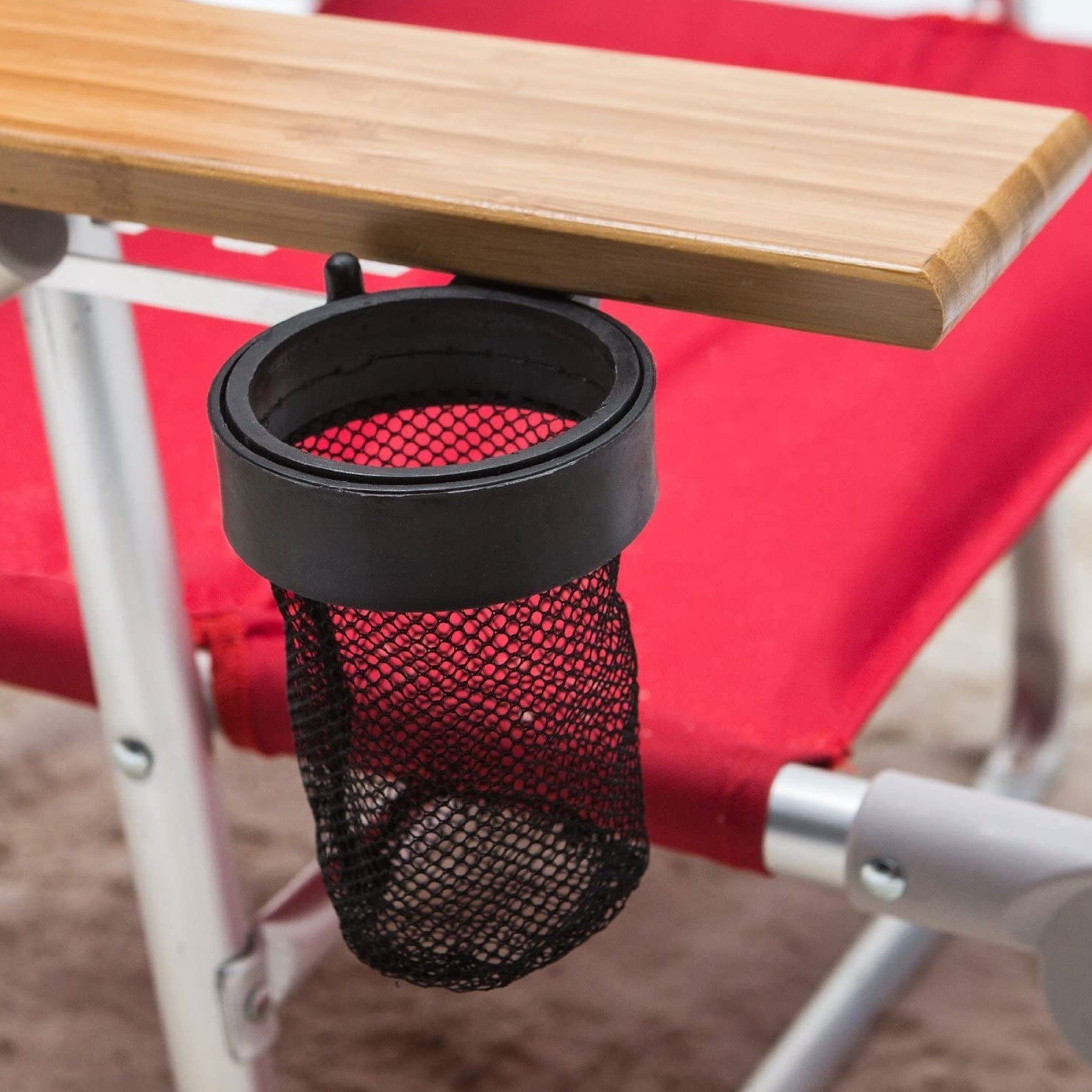 The extra-wide wooden armrests add style to function while the breathable mesh fabric makes sure you get some airflow. Should you get thirsty, this tanning chair has a convenient cup holder to keep your beverages nearby. Thanks to the sturdy aluminum frame, the outdoor chair can support up to 275 pounds and resists rust for long-lasting use. When you're ready to go, the camping chair folds up and includes a carry strap for easy transport.