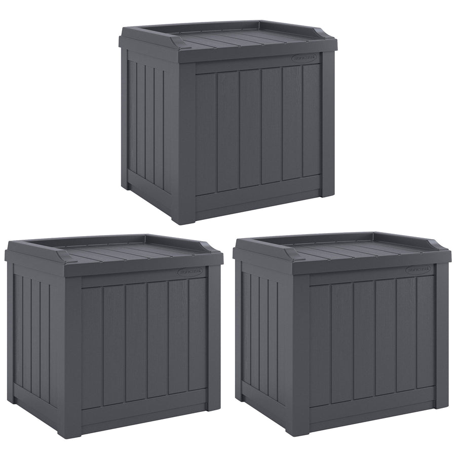 Suncast 22 Gal Outdoor Patio Small Deck Box w/Storage Seat, Cyberspace (3 Pack)