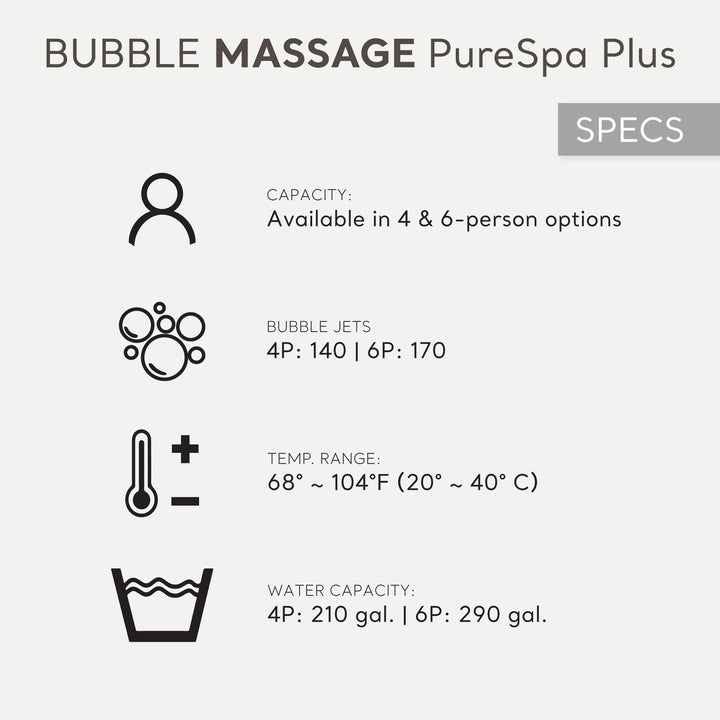 - Inflatable hot tub with 2 headrests, 170 high-powered bubble jets, easy control provides a great spa experience for 6 people, electronic hard water treatment system that tops calcium residues from forming, and a built-in hard water treatment system for softer water