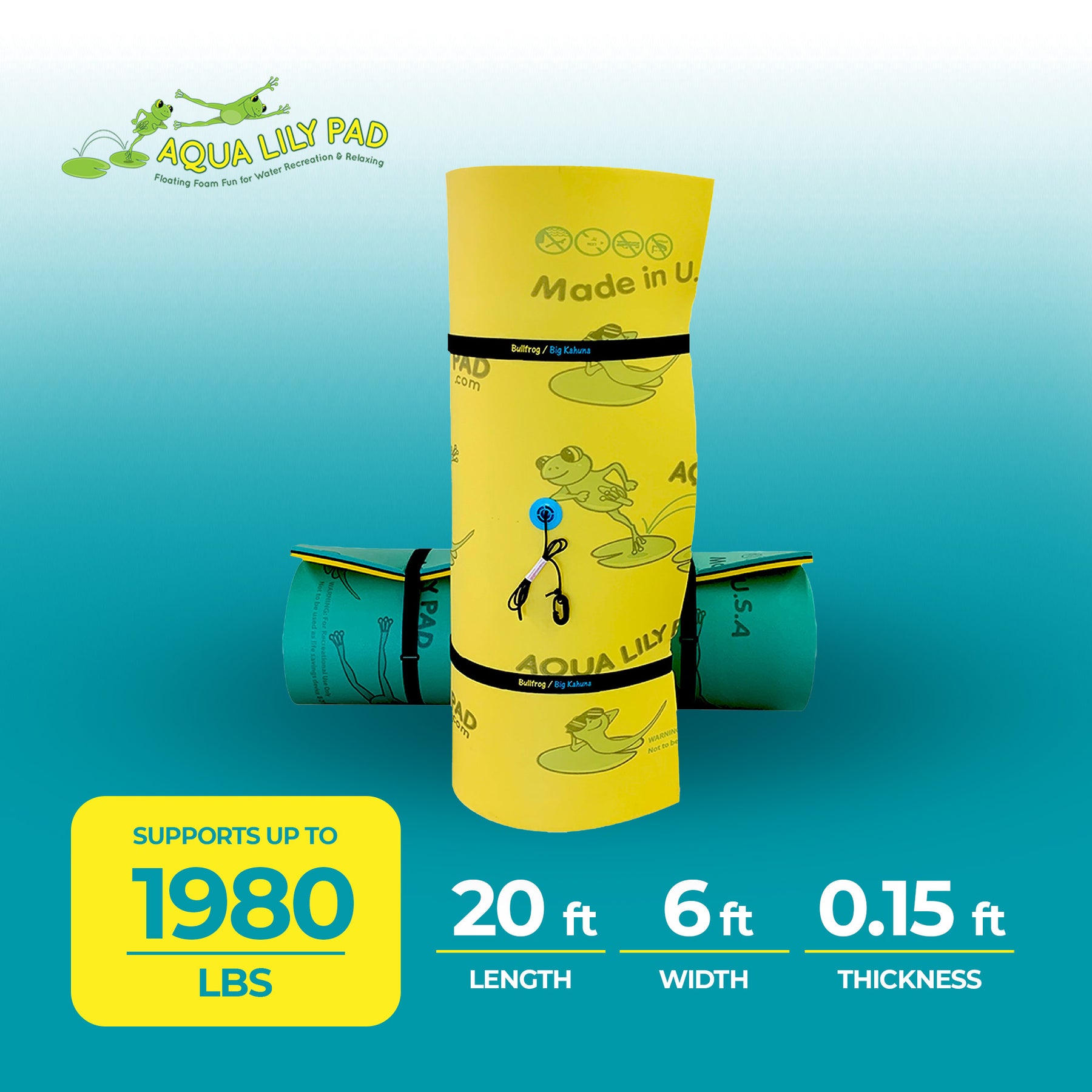 Aqua Lily Pad 20 Ft Bullfrog Water Playground Floating Foam Island, Green/Yellow
