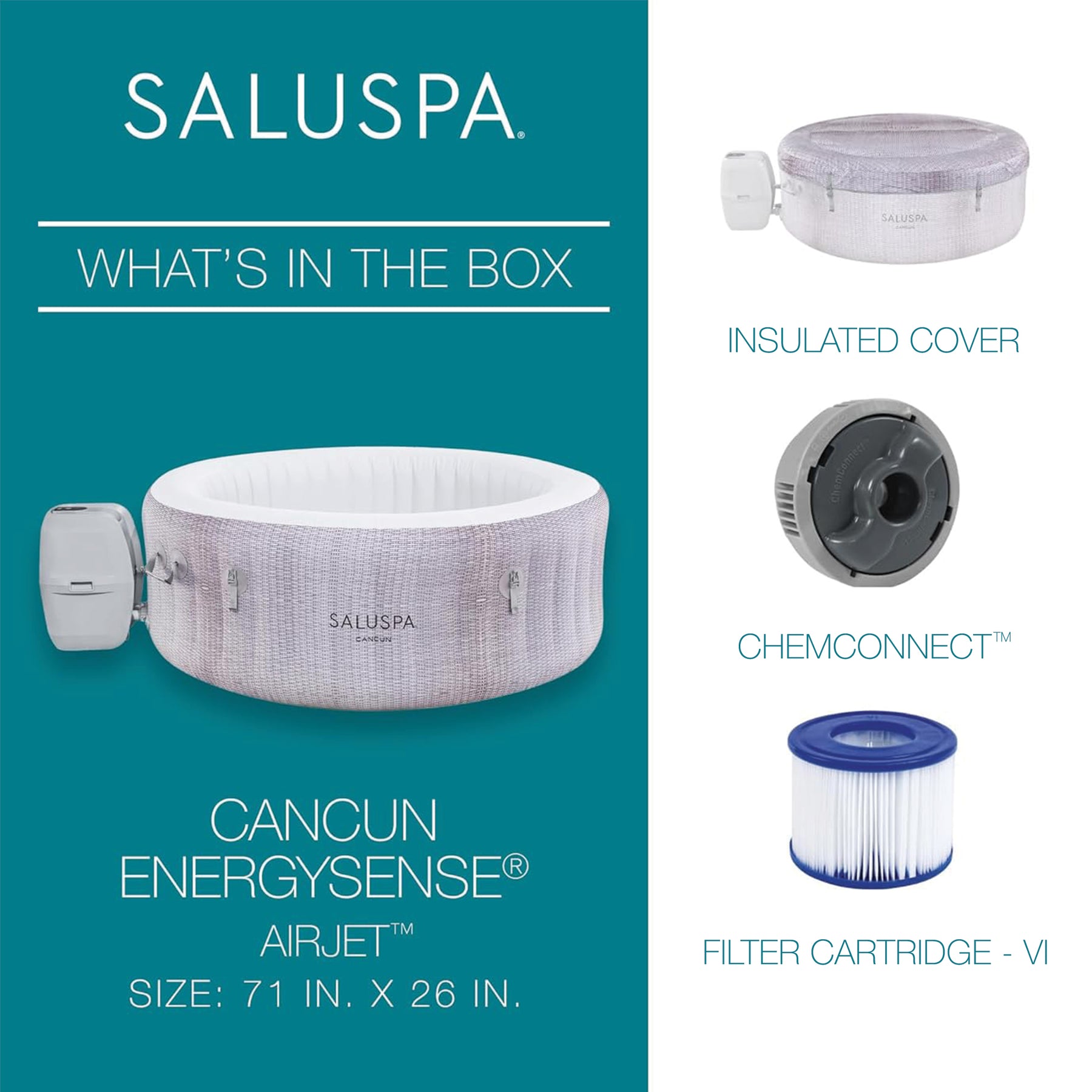 Bestway SaluSpa Cancun 2 to 4 Person Inflatable Hot Tub, Energy-Efficient Spa