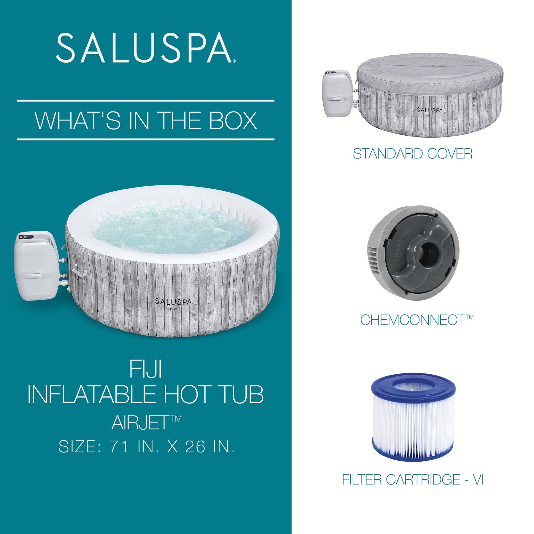 This spa comes with a reinforced cover that locks in heat while not in use, so you can be sure it's ready whenever you are. Enjoy the luxury of a hot tub in your backyard with the Bestway Fiji SaluSpa Inflatable Hot Tub.