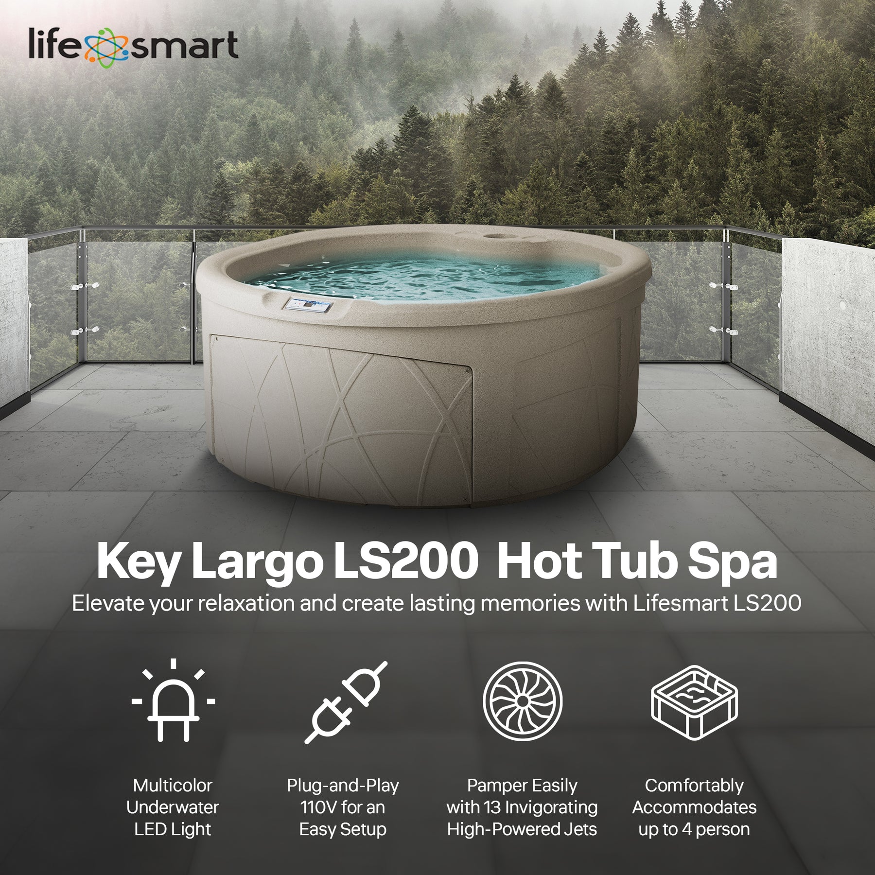 LifeSmart Key Largo Hot Tub Spa with 110 Volt Plug and Play and LED Light, Sand