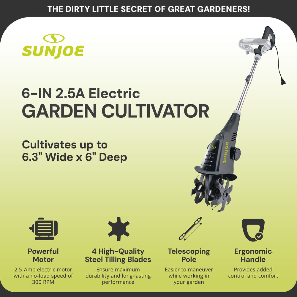 Sun Joe Electric Corded Garden Cultivator, 2.5 Amp Motor & Steel Blades, TJ599E