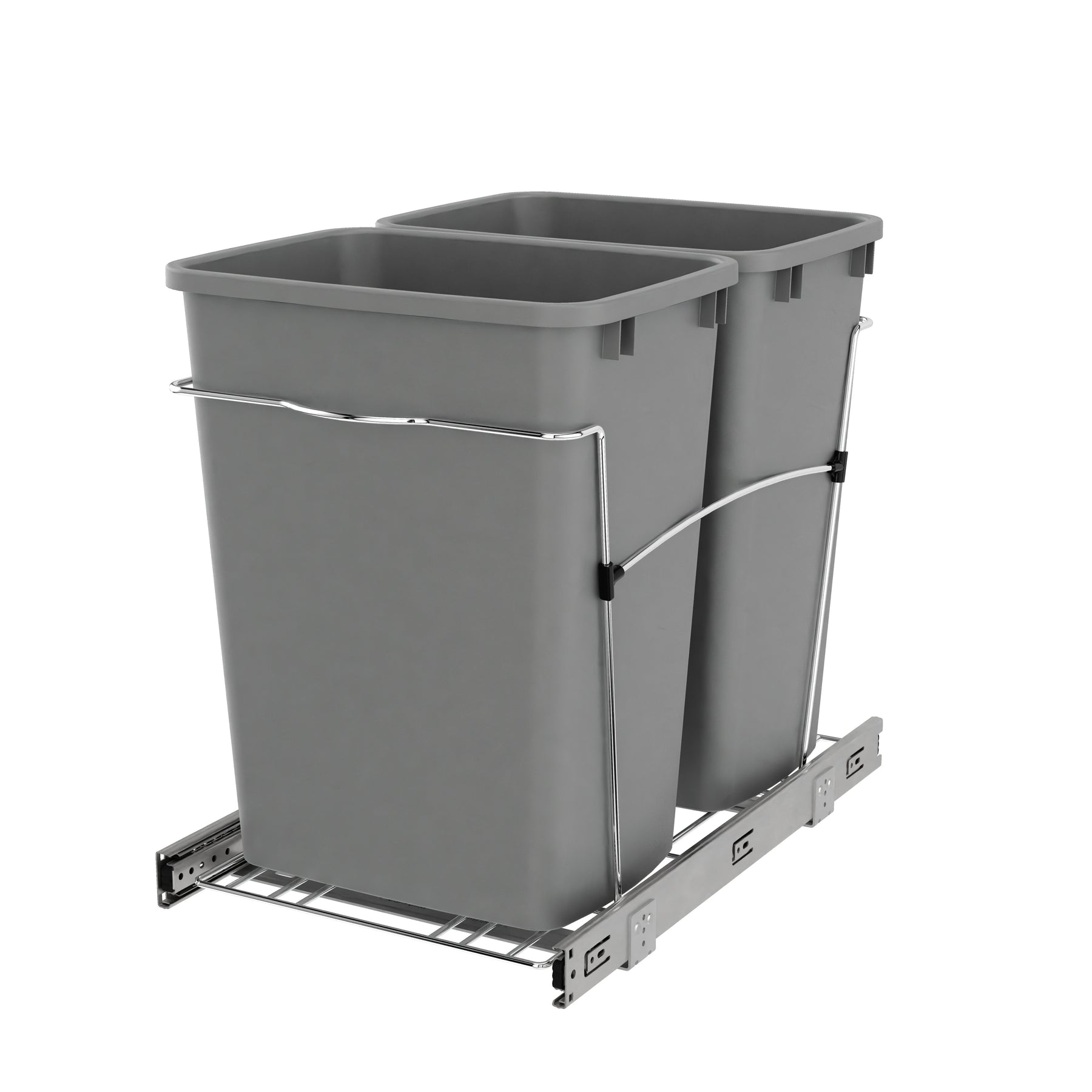 Rev-A-Shelf Double Pullout Trash Can 35 qt. for Kitchen, Silver, RV-18KD-17C S