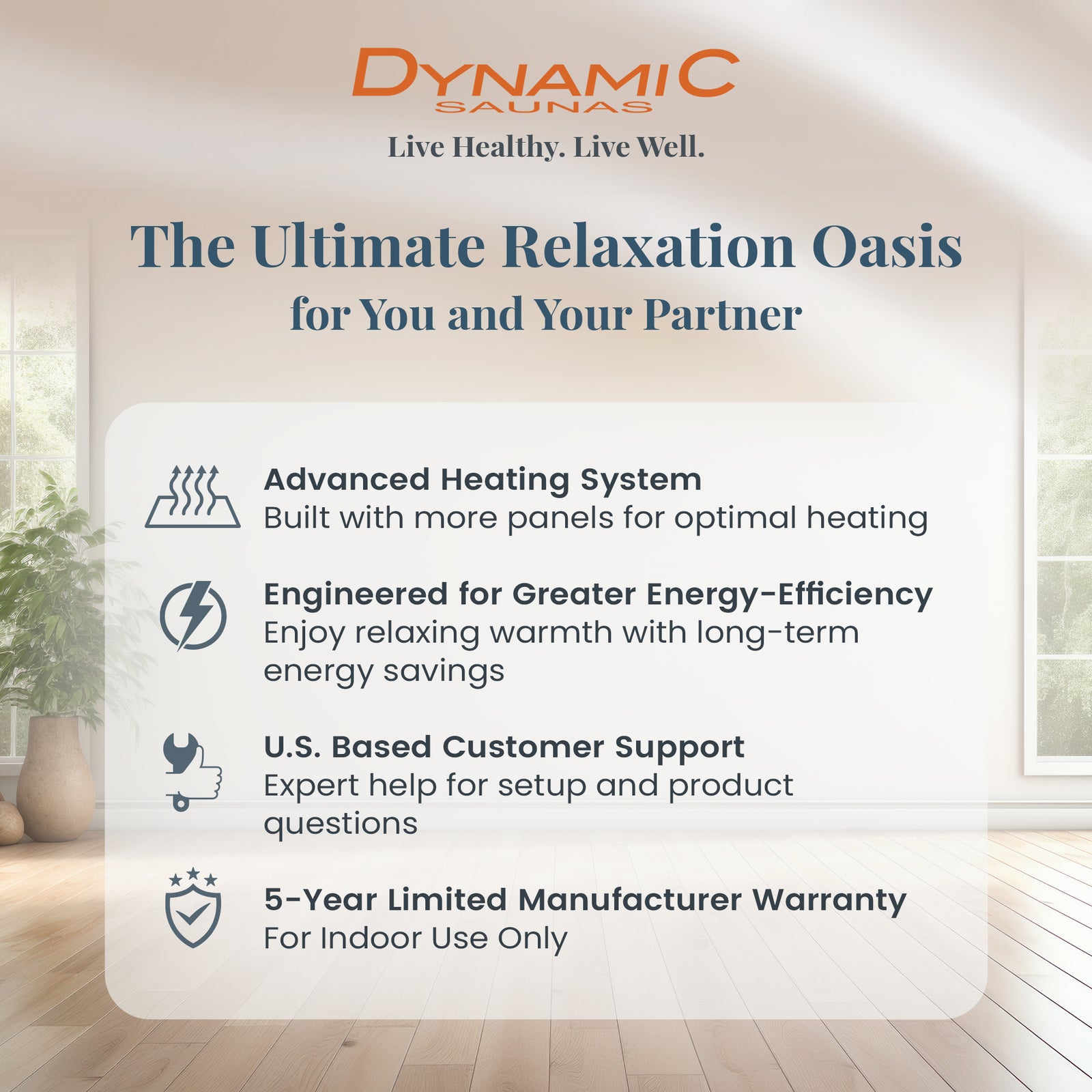 Dynamic Saunas Andora 2-Person Low EMF FAR Infrared Sauna, Canadian Hemlock Wood