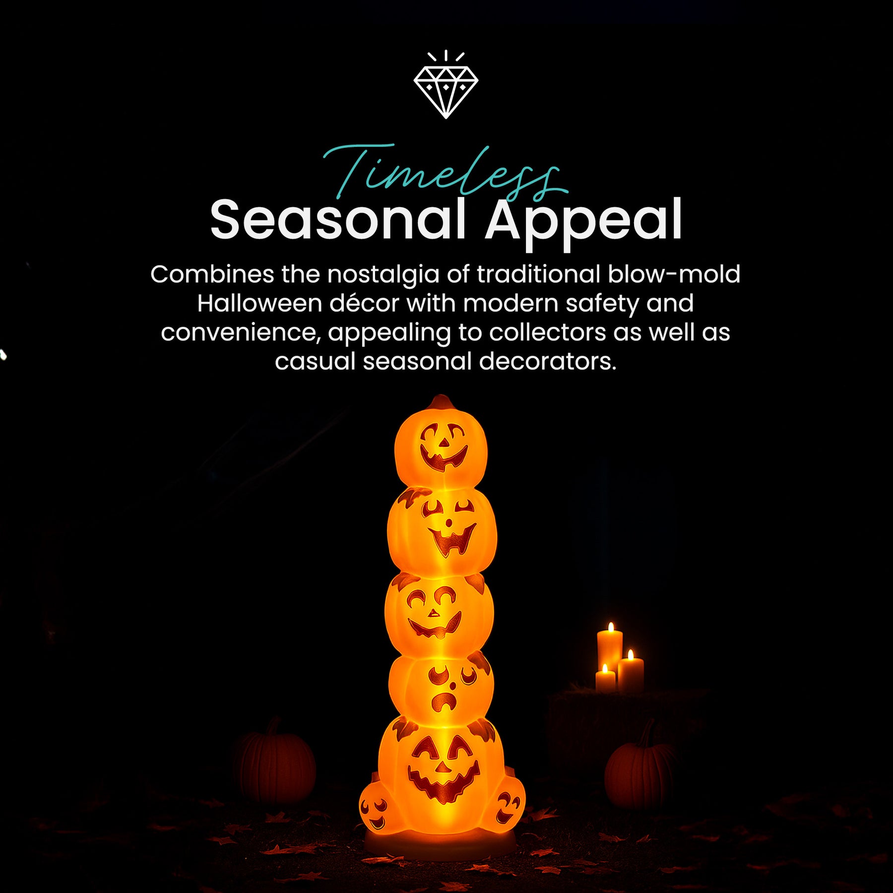 • 37.5-inch LED pre-lit pumpkin stack designed for indoor or outdoor Halloween decor, bringing festive charm to any space
