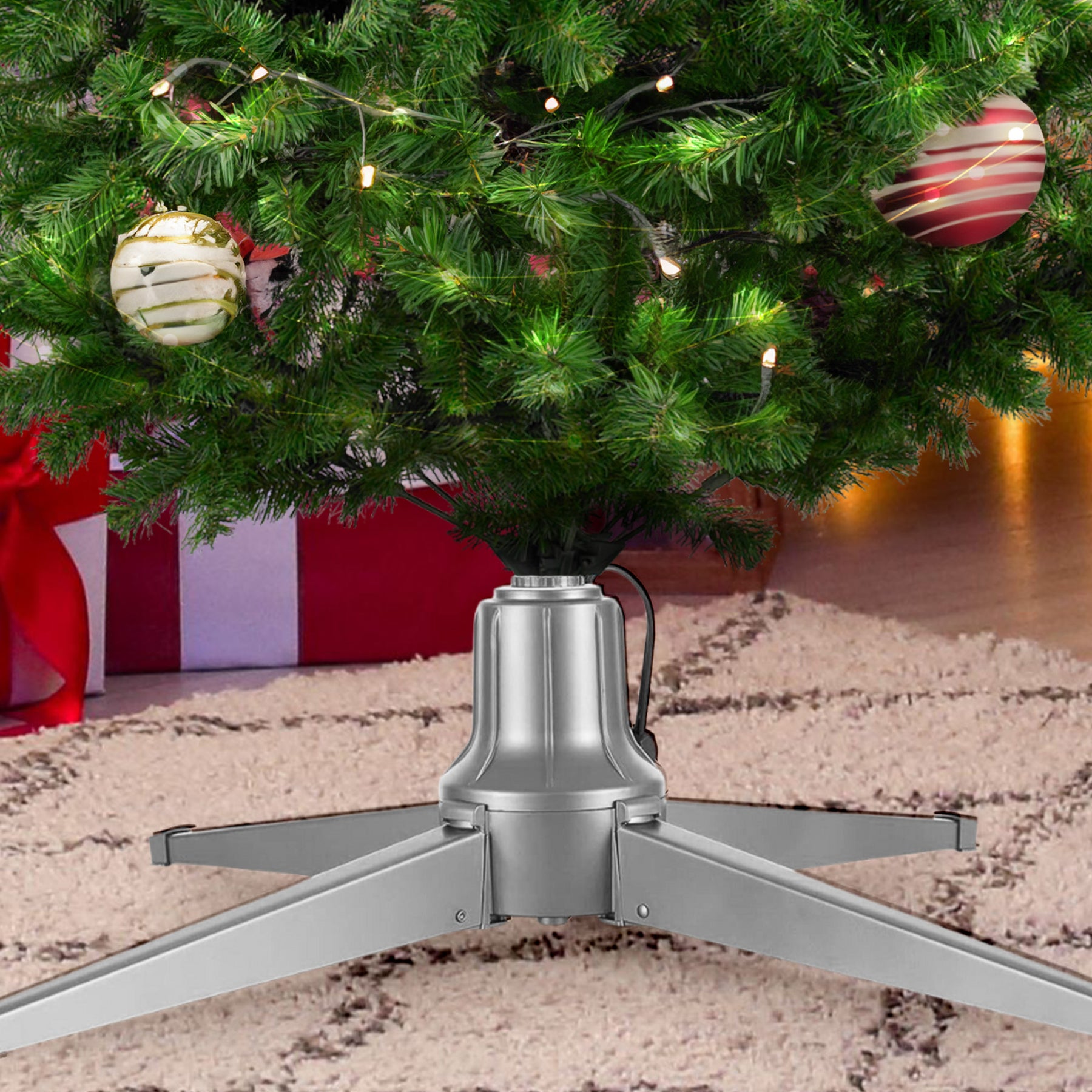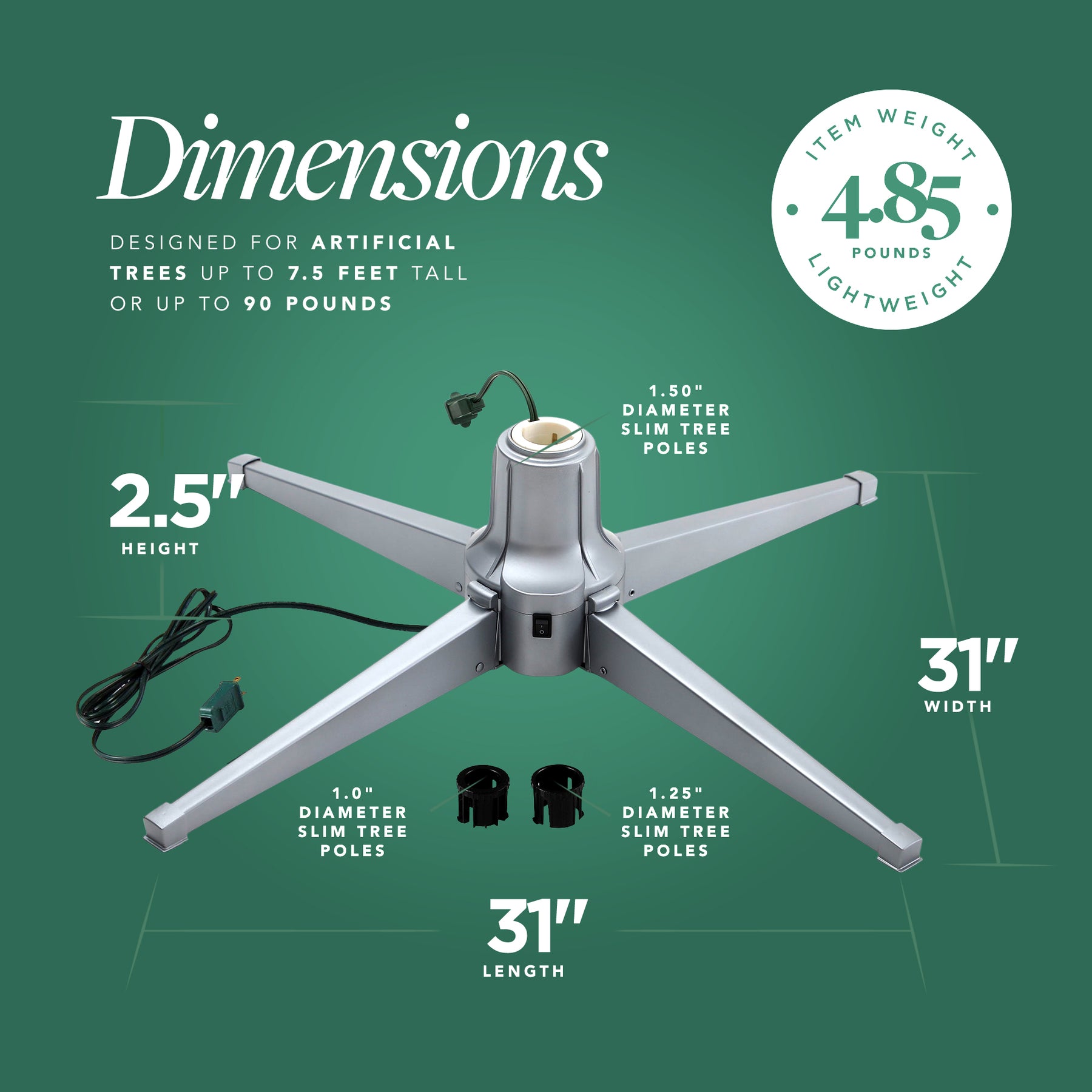 - Diameter metal stand ensures stability for trees up to 7.5 feet tall, featuring 360-degree rotation and 2.5 inches of clearance for tree skirts or presents