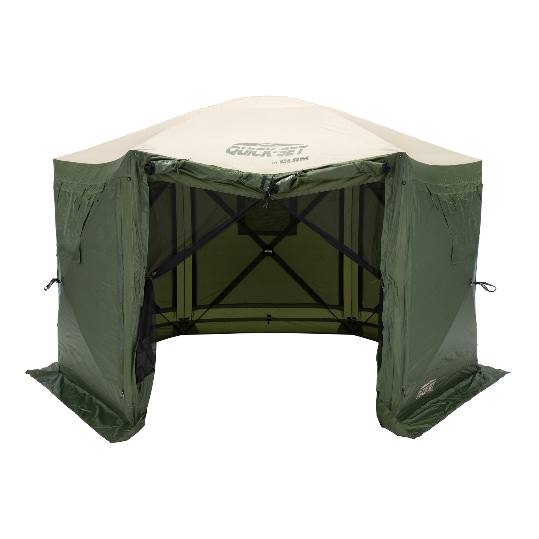 CLAM Quick-Set Pavilion 12.5x12.5 Ft Portable Outdoor Canopy Shelter, Green/Tan