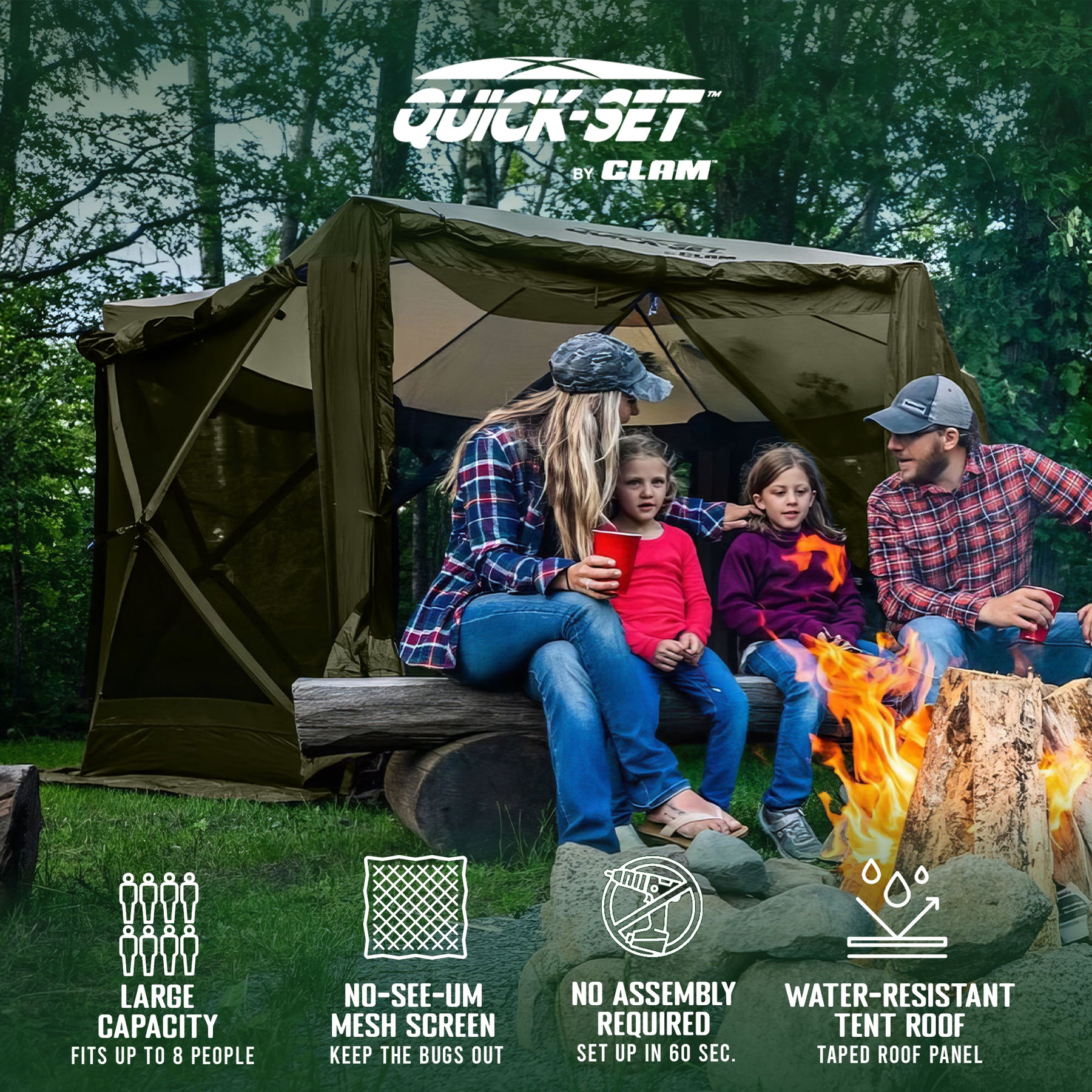 - Accommodates up to 8 people or spacious enough to fit a picnic table plus a few camping chairs