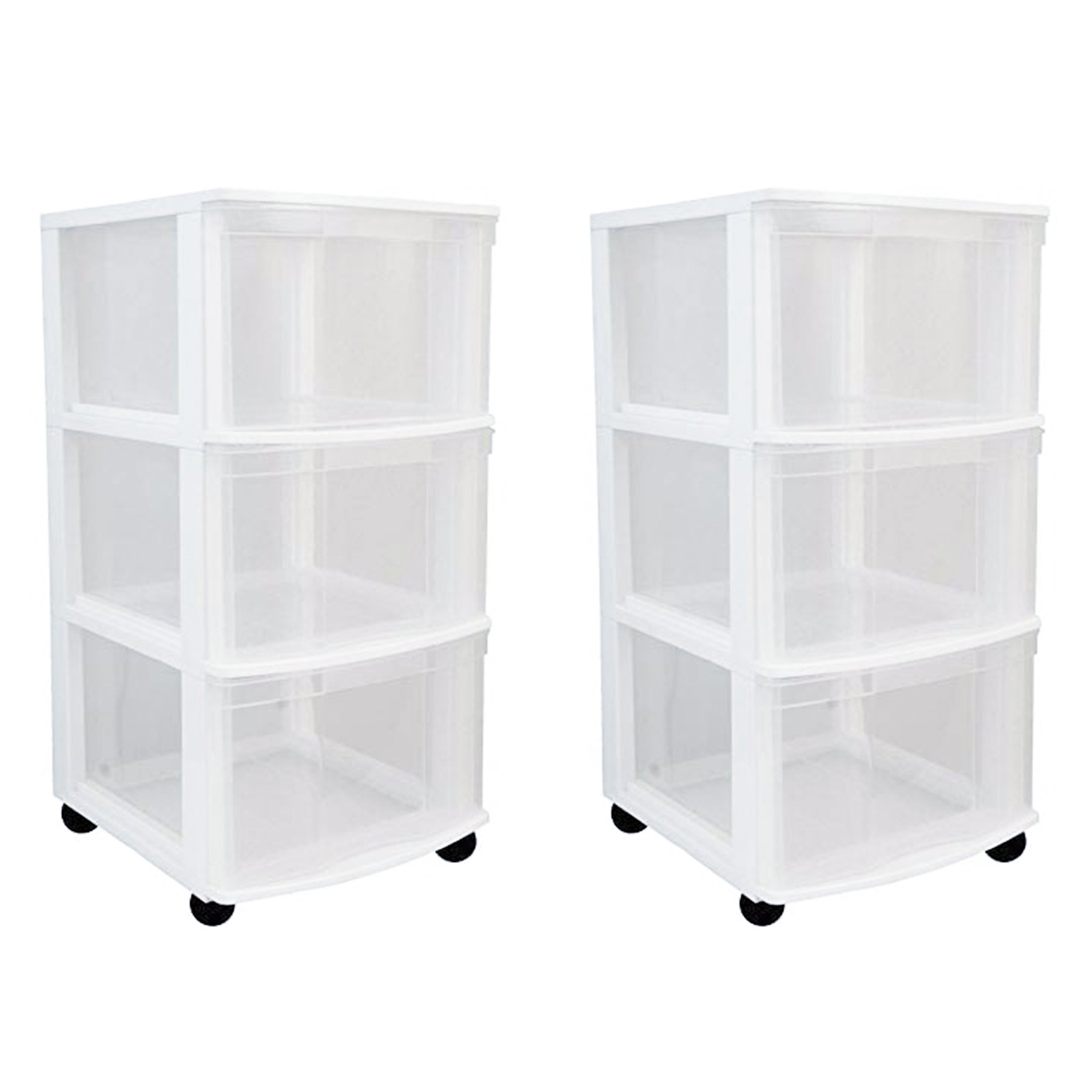 The 2-pack of Gracious Living Classic 3-Drawer Storage Carts offers versatile storage solutions for your home, office, or garage. With its durable and heavy-duty construction, this multi-purpose 3-drawer chest is perfect for organizing a wide range of items. The clear drawers provide easy identification of your stored items, and the easy slide design makes it seamless to open and close the plastic dresser.