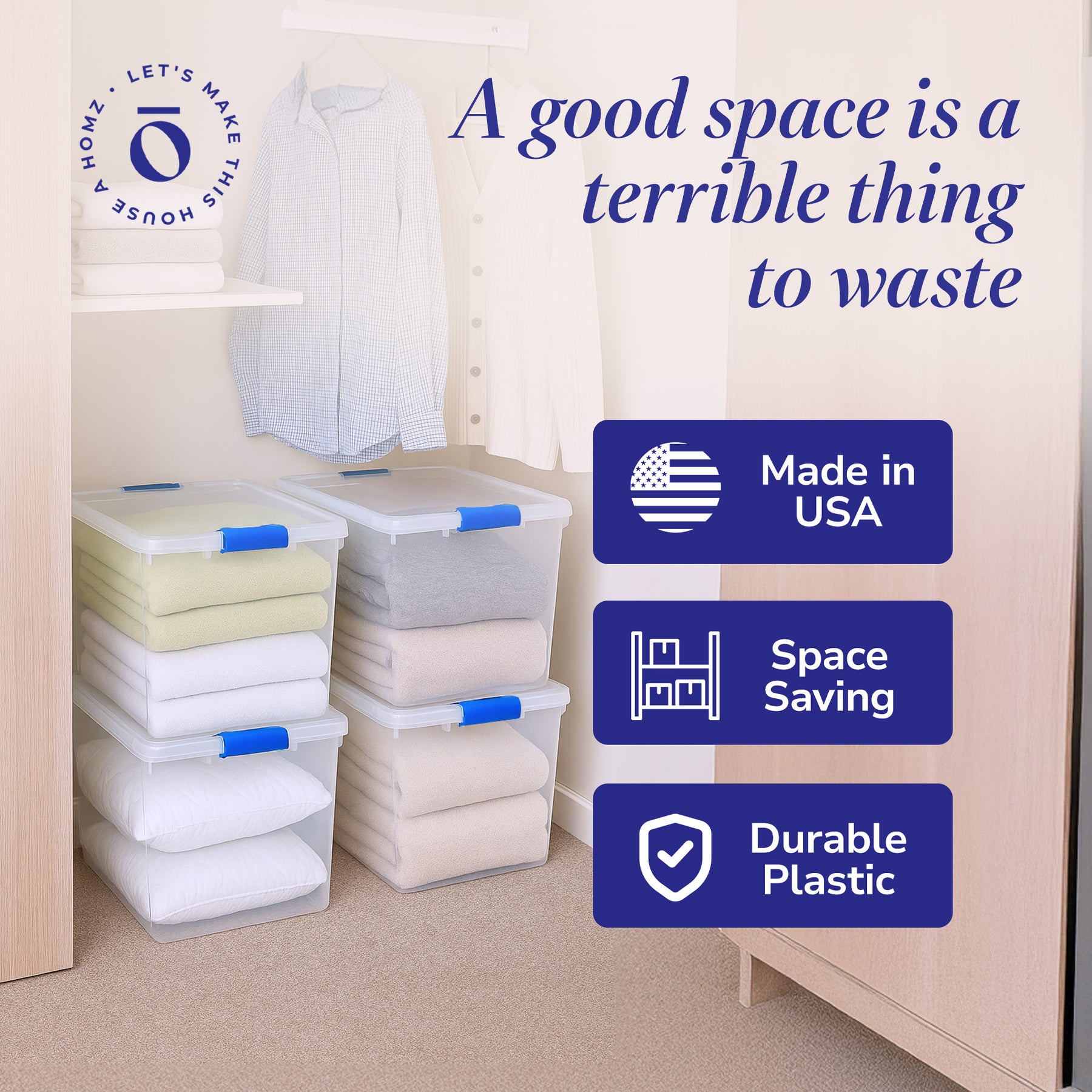 Homz 31 Quart Heavy Duty Clear Plastic Stackable Storage Containers, 12 Pack