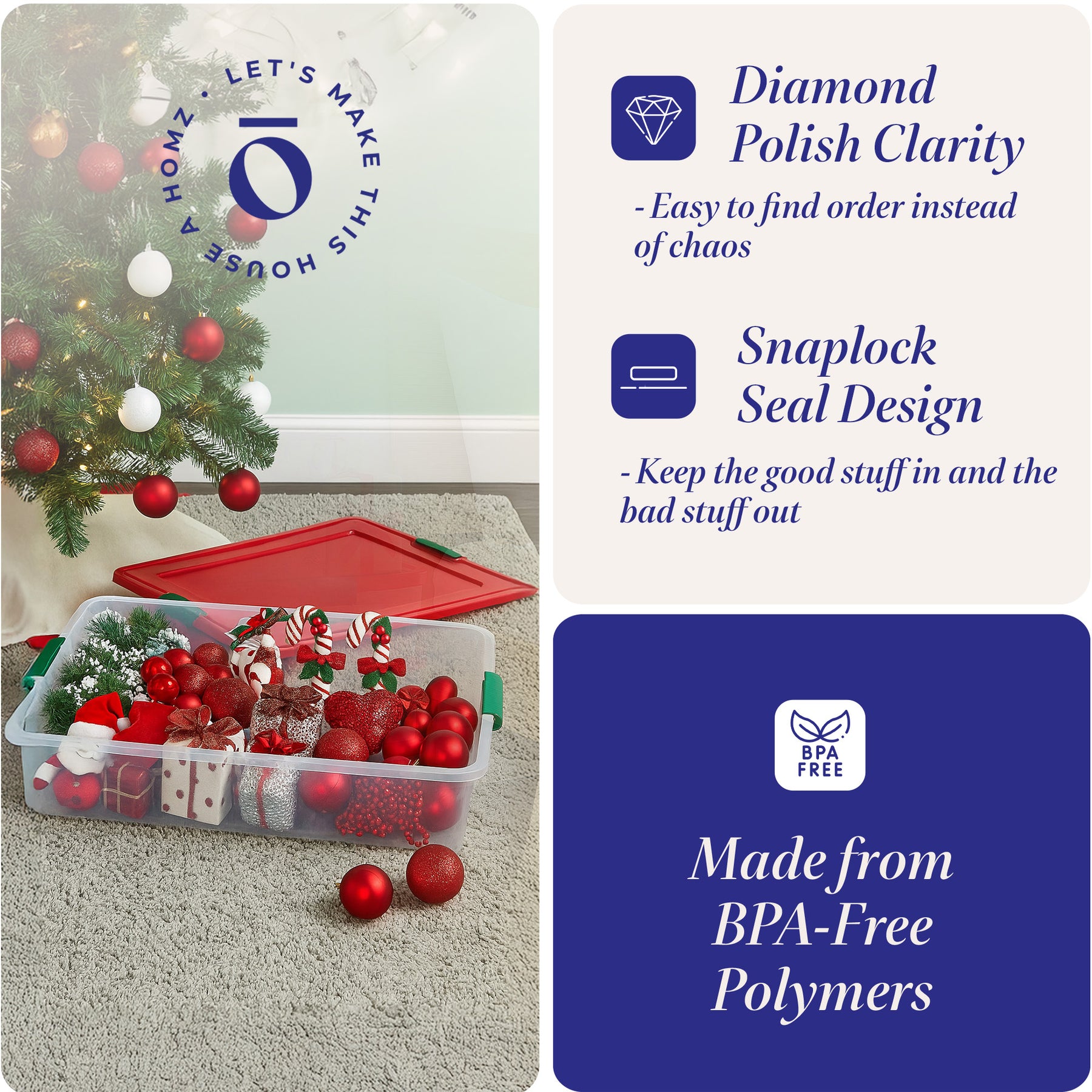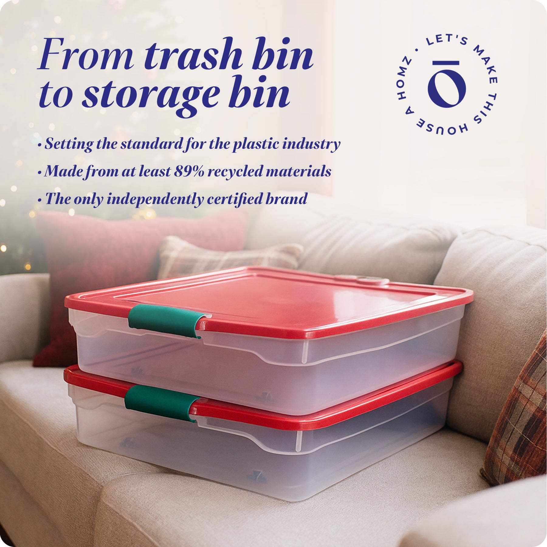 Save yourself from the stress that comes with constant mess with the 4-pack of HOMZ 60-Quart Latching Holiday Underbed Storage Containers.