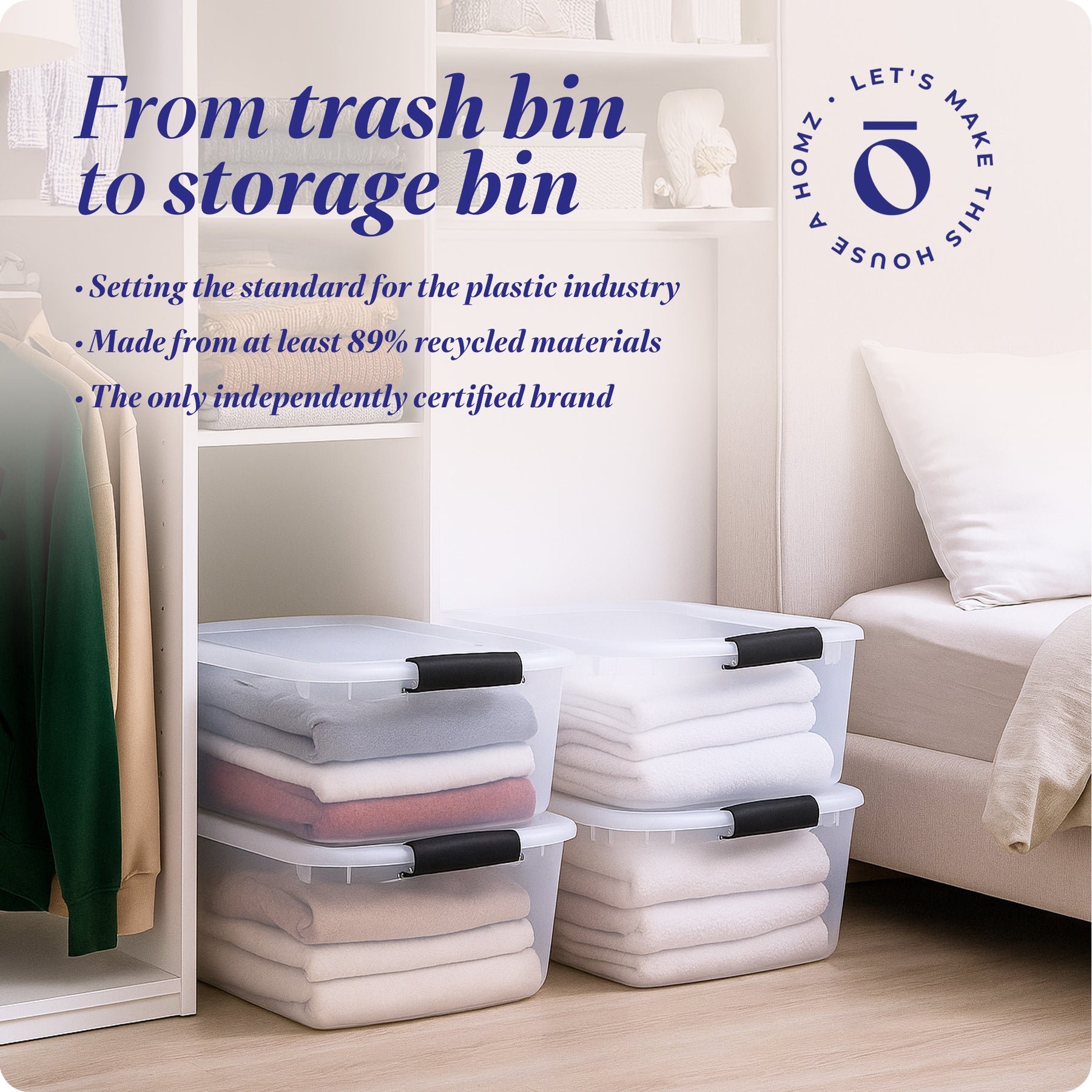 Homz 64 Qt Clear Storage Organizing Container Bin with Latching Lids (4 Pack)